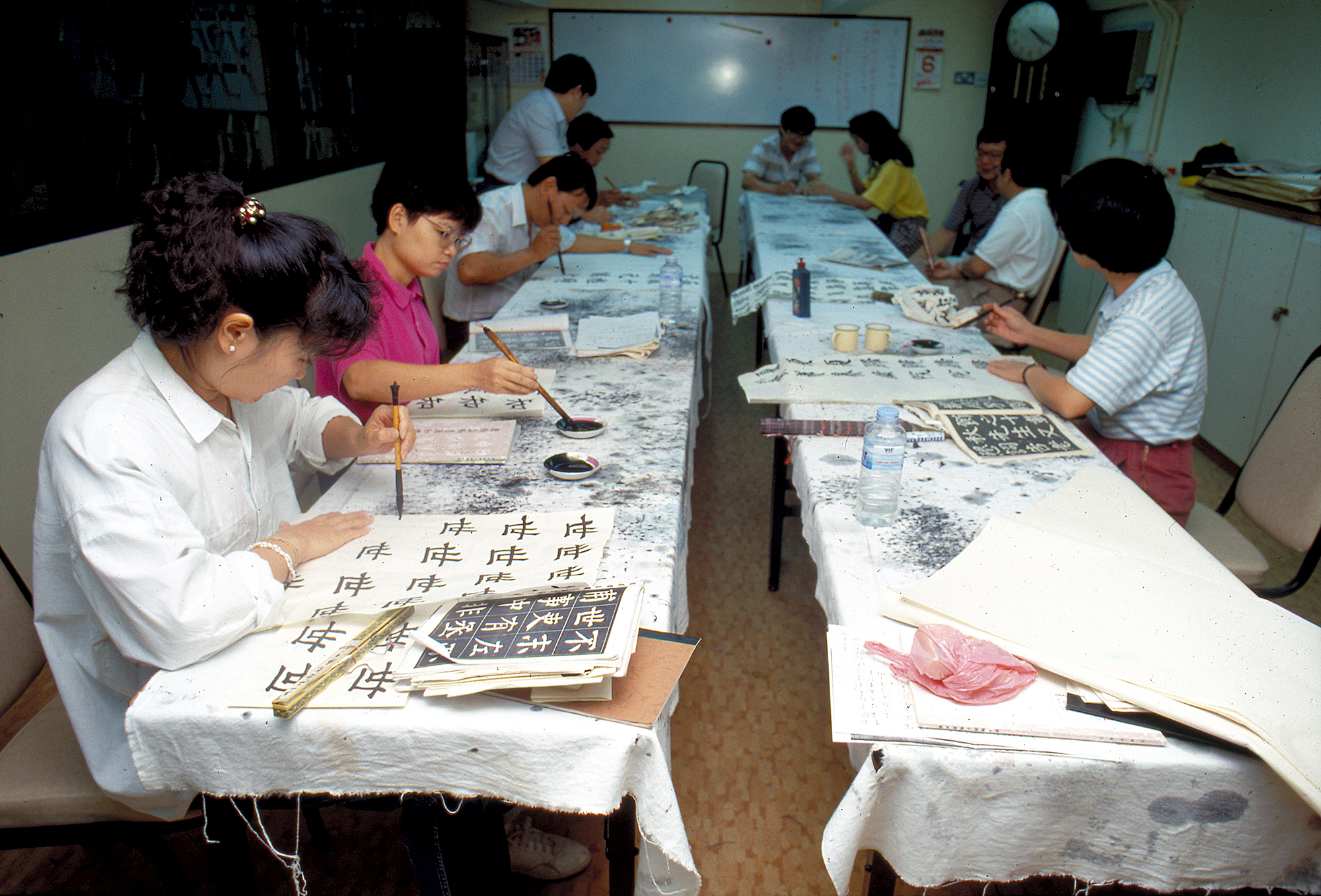 承載豐富意涵的書法,對大多數的新加坡人來說,怕是越來越陌生了。1991年12月號〈新加坡華語運動再進階〉。(邱瑞金攝)