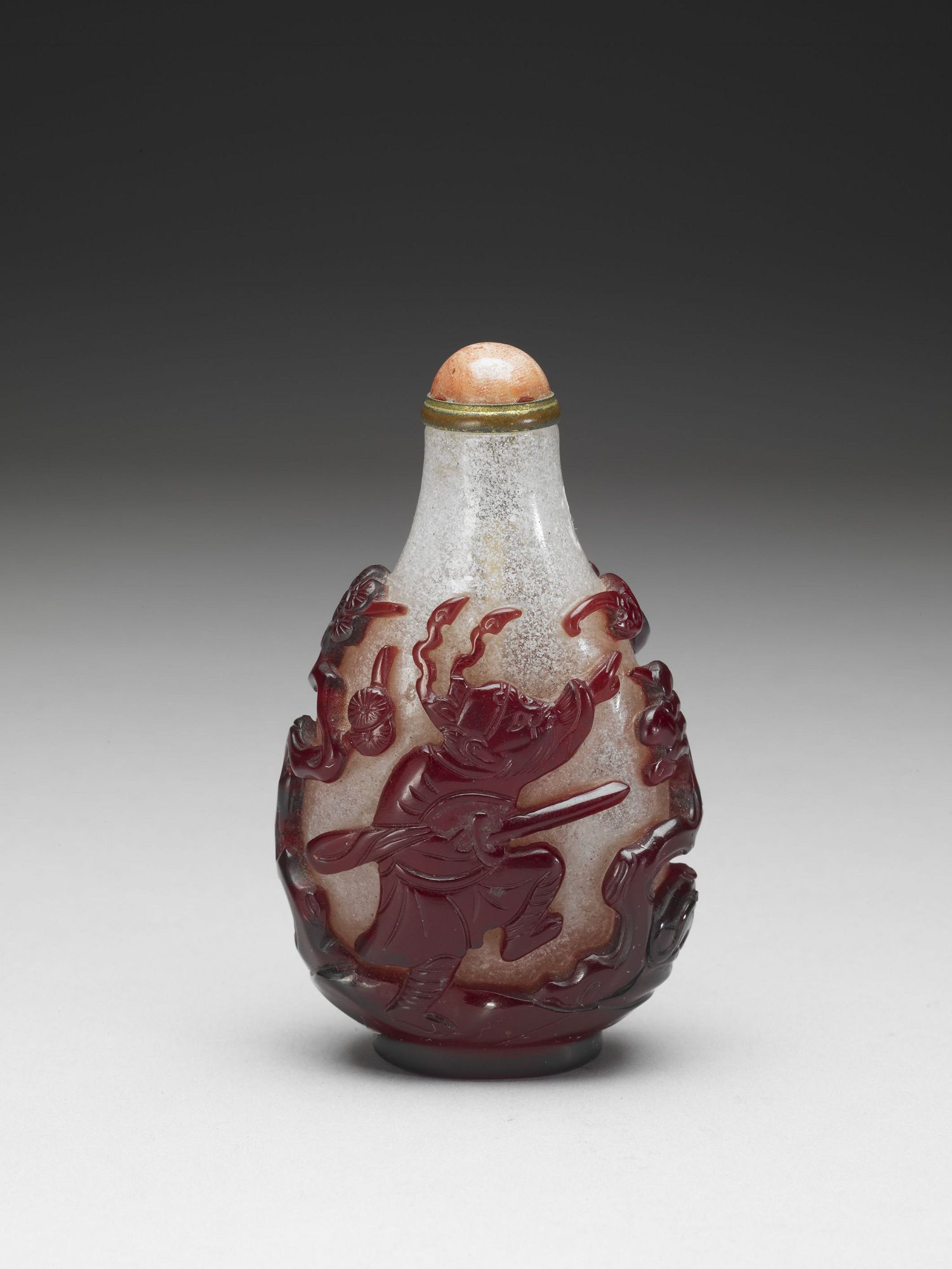 清 霏雪地套紅玻璃鍾馗鼻煙壺