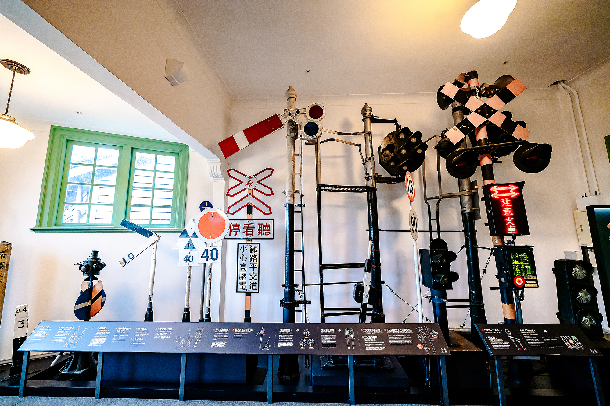 在展覽上,除了最重點的「鐵道文化常設展」,展出不同等級的車廂、車站月台、交通號誌、票券、驗票剪、號誌機、閉塞器,甚至運行圖等文資。