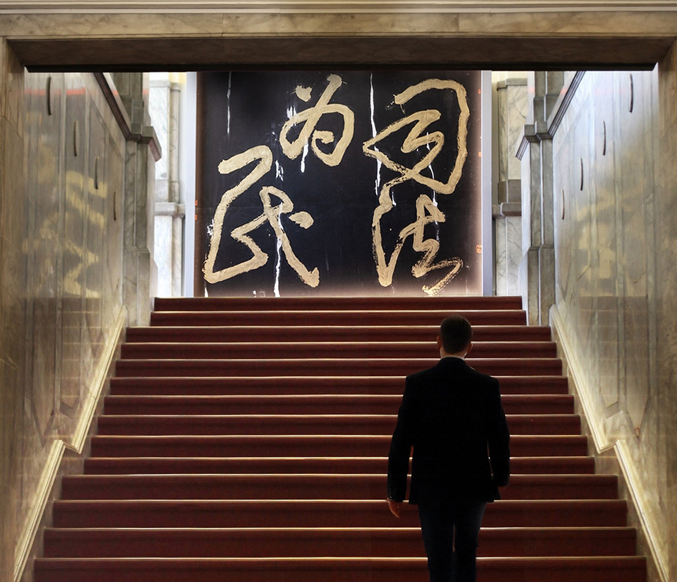 〈司法為民〉──2020年朱振南為司法院題作之榜書,現懸於大廳。筆勢一氣呵成、雄健有力,盡顯其書寫膽識與氣度。