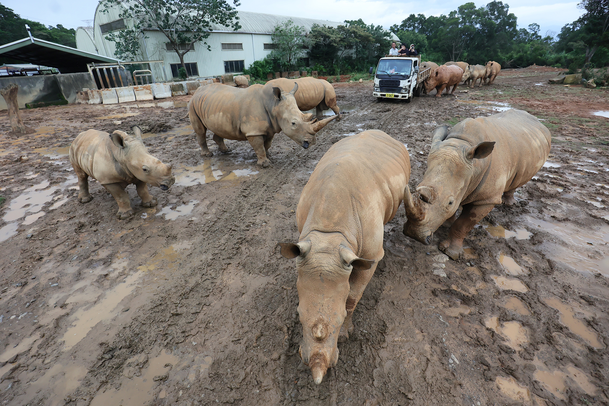 史國訪團參觀六福犀牛繁育研究基地,盛讚台灣動物保育的成果。