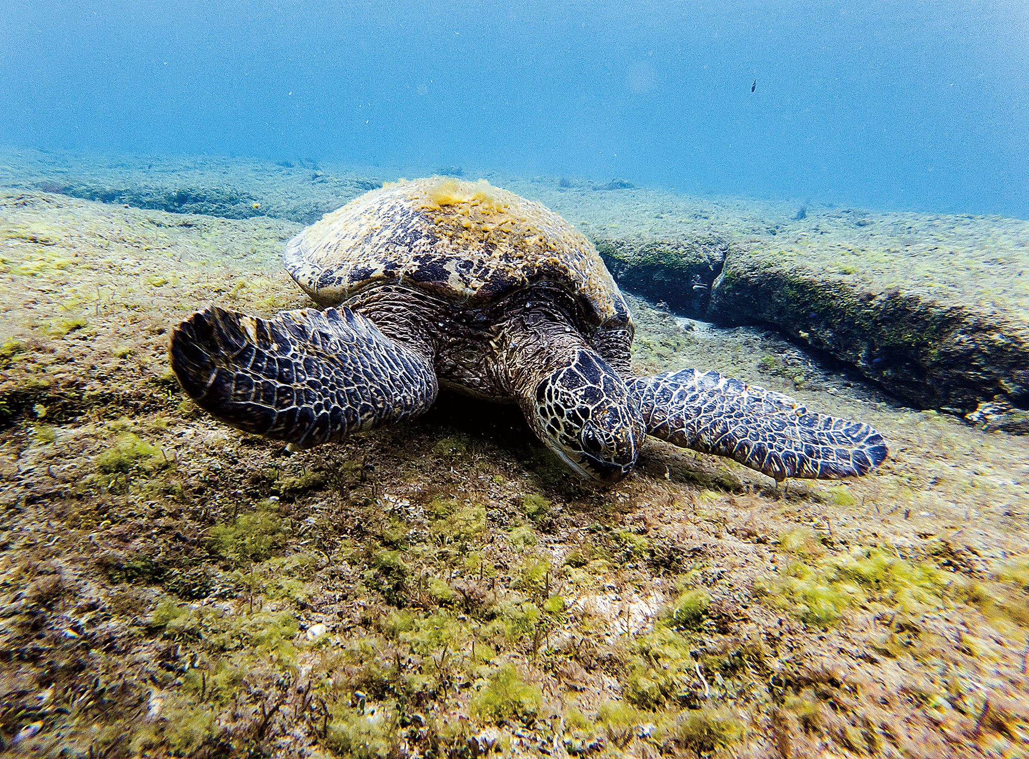 還有他在小琉球潛下海與海龜共遊,僅隔十公分的距離,欣賞牠們在海裡優游的景象,感受到台灣自然生態的美好。