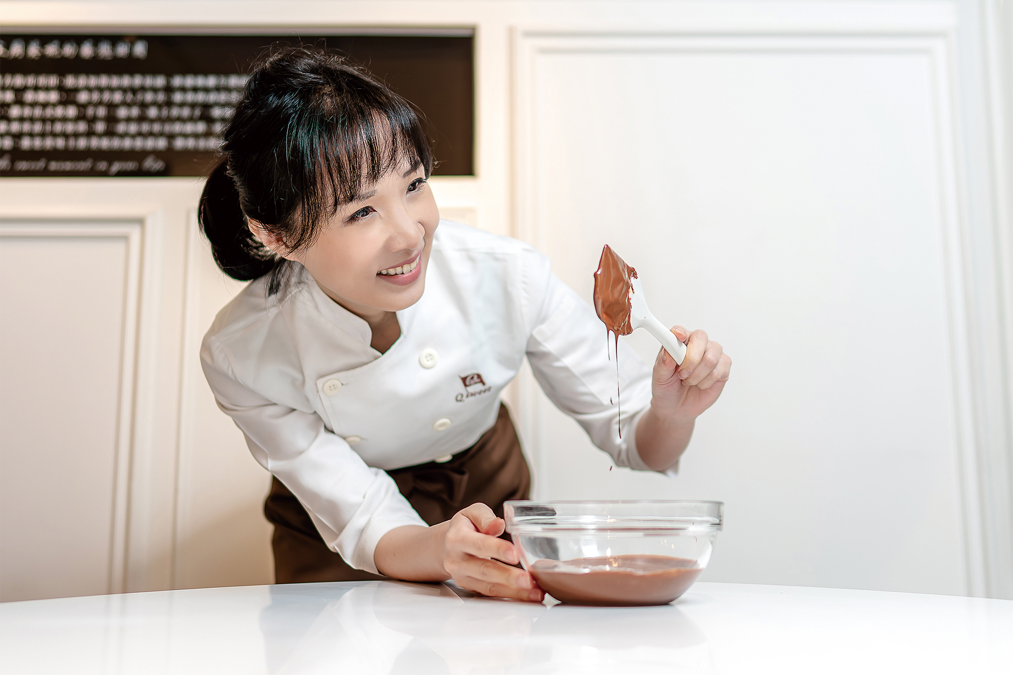 離職後,她到比利時巧克力學院進修,也在歐陸各地尋原料。2015年,終於在繁華的台北信義路上開設「Q Sweet」,主打粉紫羅蘭色的巧克力專賣店,置身其中,就像進入女性色彩十足的旖旎夢境。