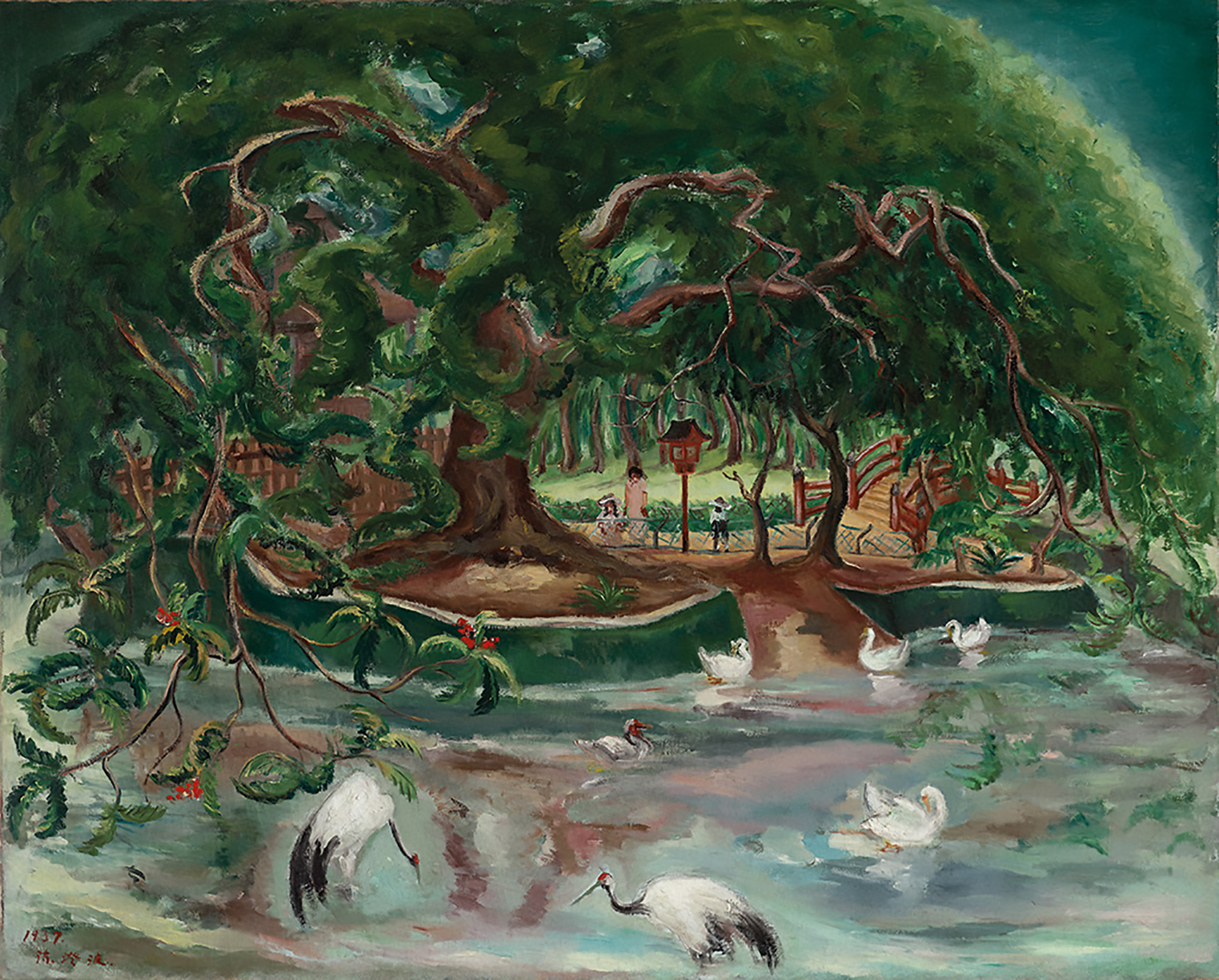 好比在日治時代,官方稱膠彩為「日本畫」,戰後則幡然改稱水墨畫為「國畫」。不同族群身分,語言、文化、審美截然不同。外在政治的高壓,加上由北京故宮來的重量級國寶鋒芒傾壓一時,大多數前輩藝術家(主要指出生於日治時代的藝術家)如同「失語的一代」,長久失去了舞台。