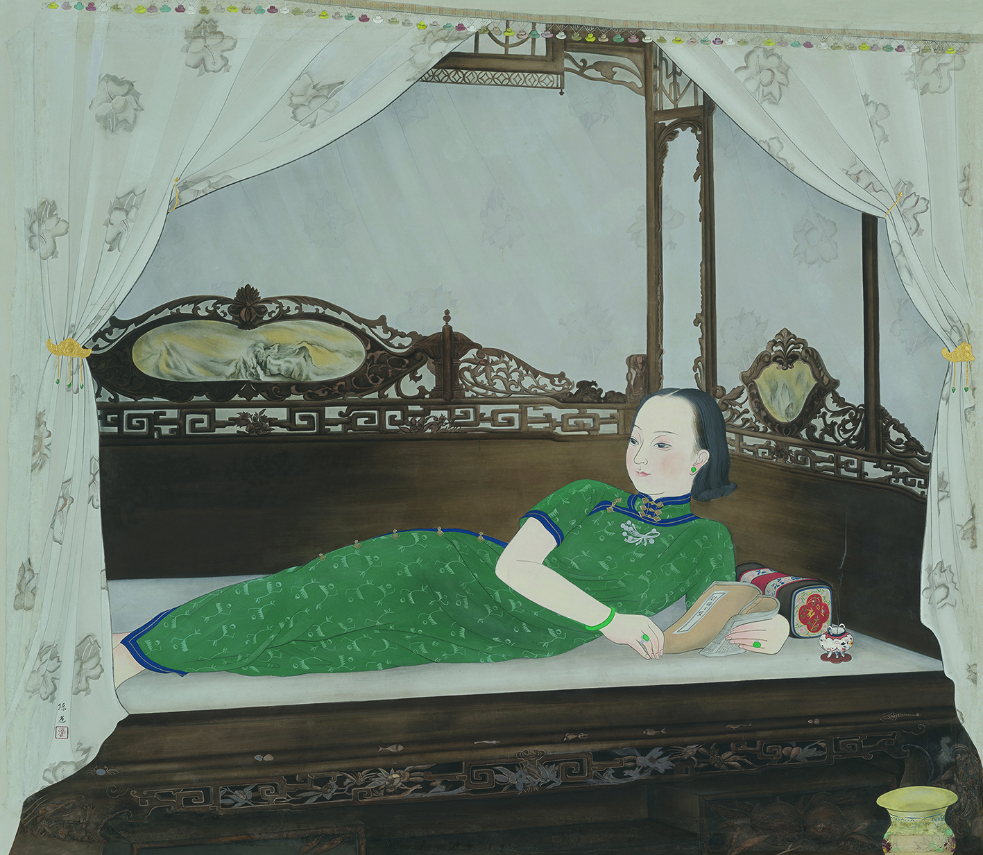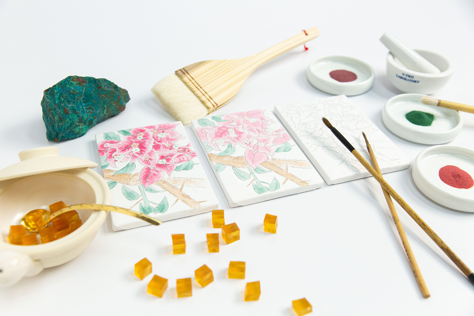 時間倒轉100多年,台灣藝壇正興起一種既不像傳統水墨畫,也不同於西方繪畫,而是一種使用鮮豔礦物顏料,展現出細膩筆觸與精良設色的獨特畫風,即是當今稱為膠彩的繪畫種類,在當時概稱為「東洋畫」。