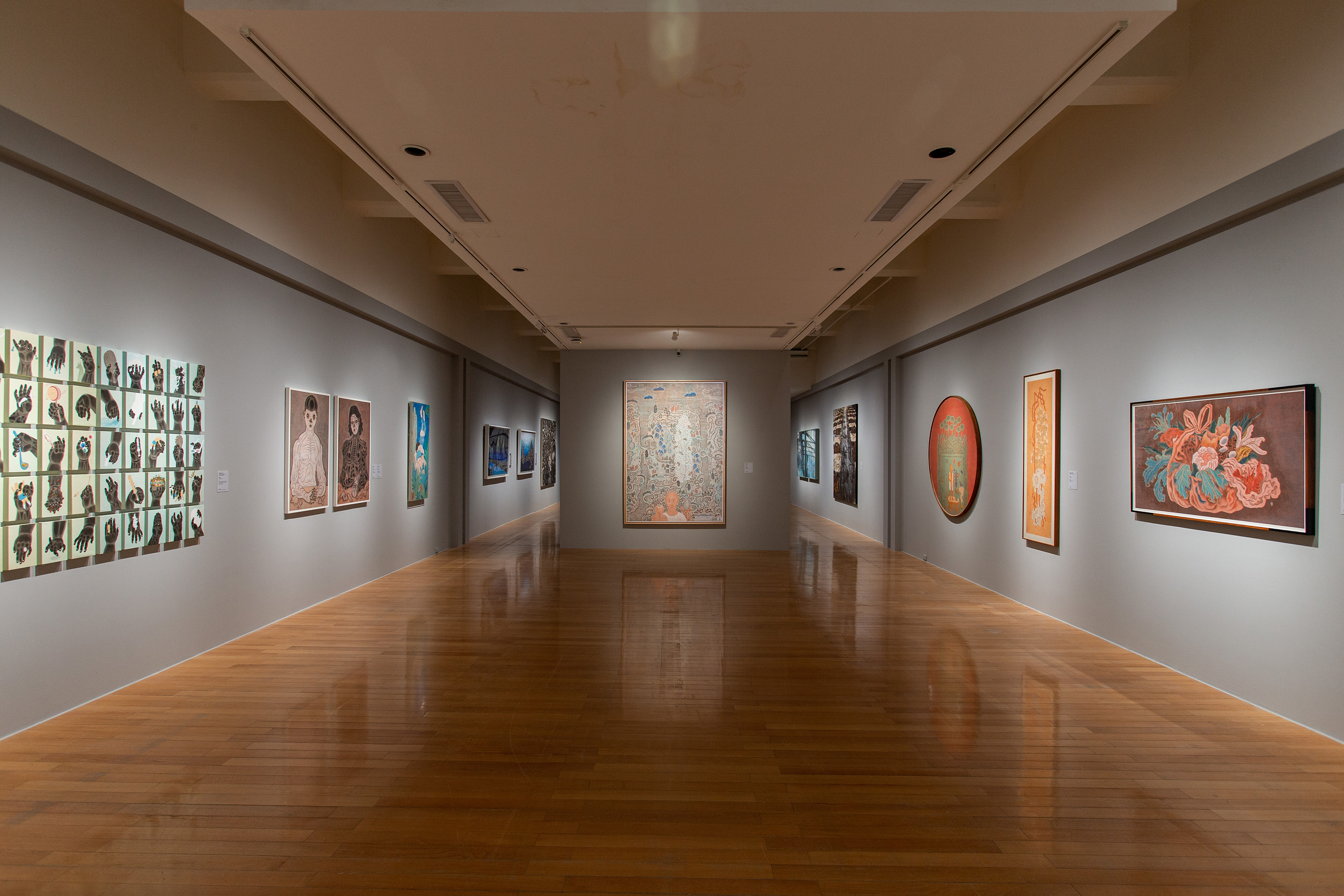 台北市立美術館助理研究員暨「喧囂的孤獨:臺灣膠彩百年尋道」策展人陳苑禎談到,重探當時日本美術體系建構與日本畫的發展背景,是日本希望發展一種能與西畫對應的繪畫風格,於是融合東方繪畫傳統與西方透視、光影、色彩等技法,形成所謂的新式日本畫,這波風貌也隨著日治時期的文化治理,而傳入台灣。