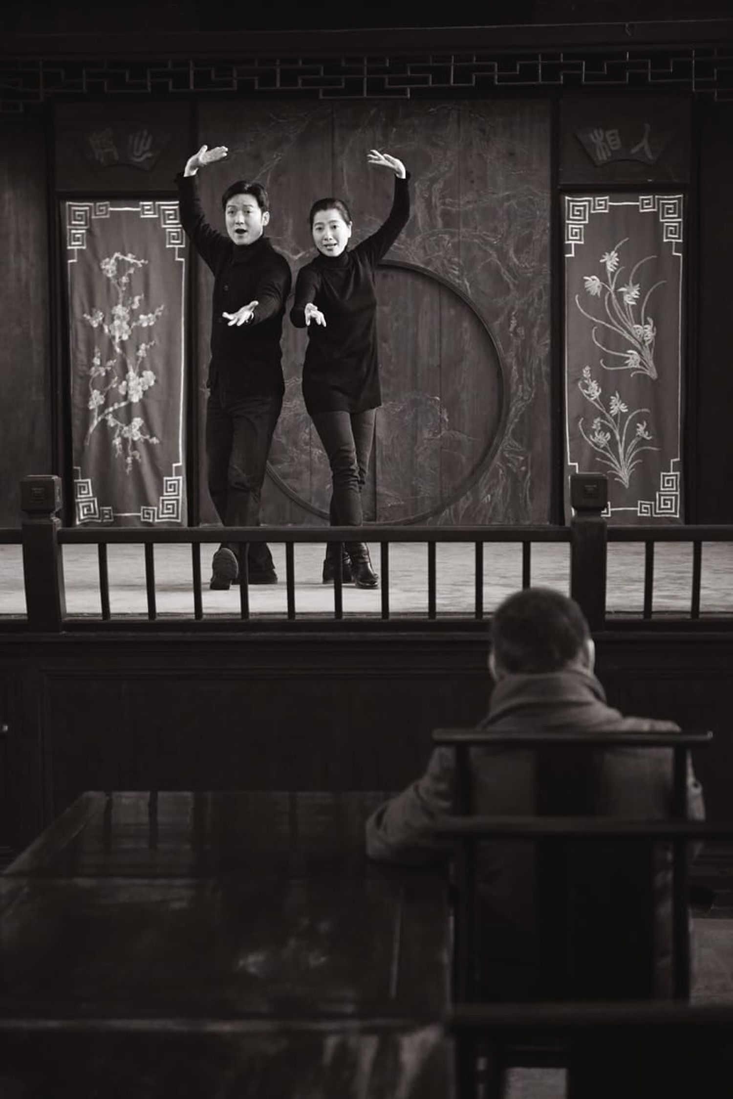 白先勇在蘇州看古戲台上俞玖林與沈豐英排演,2013