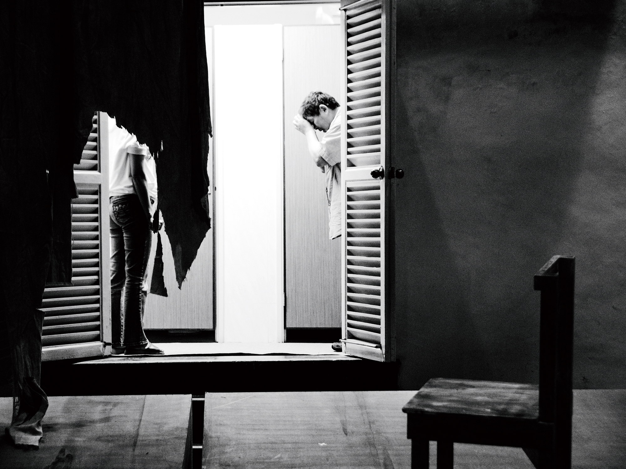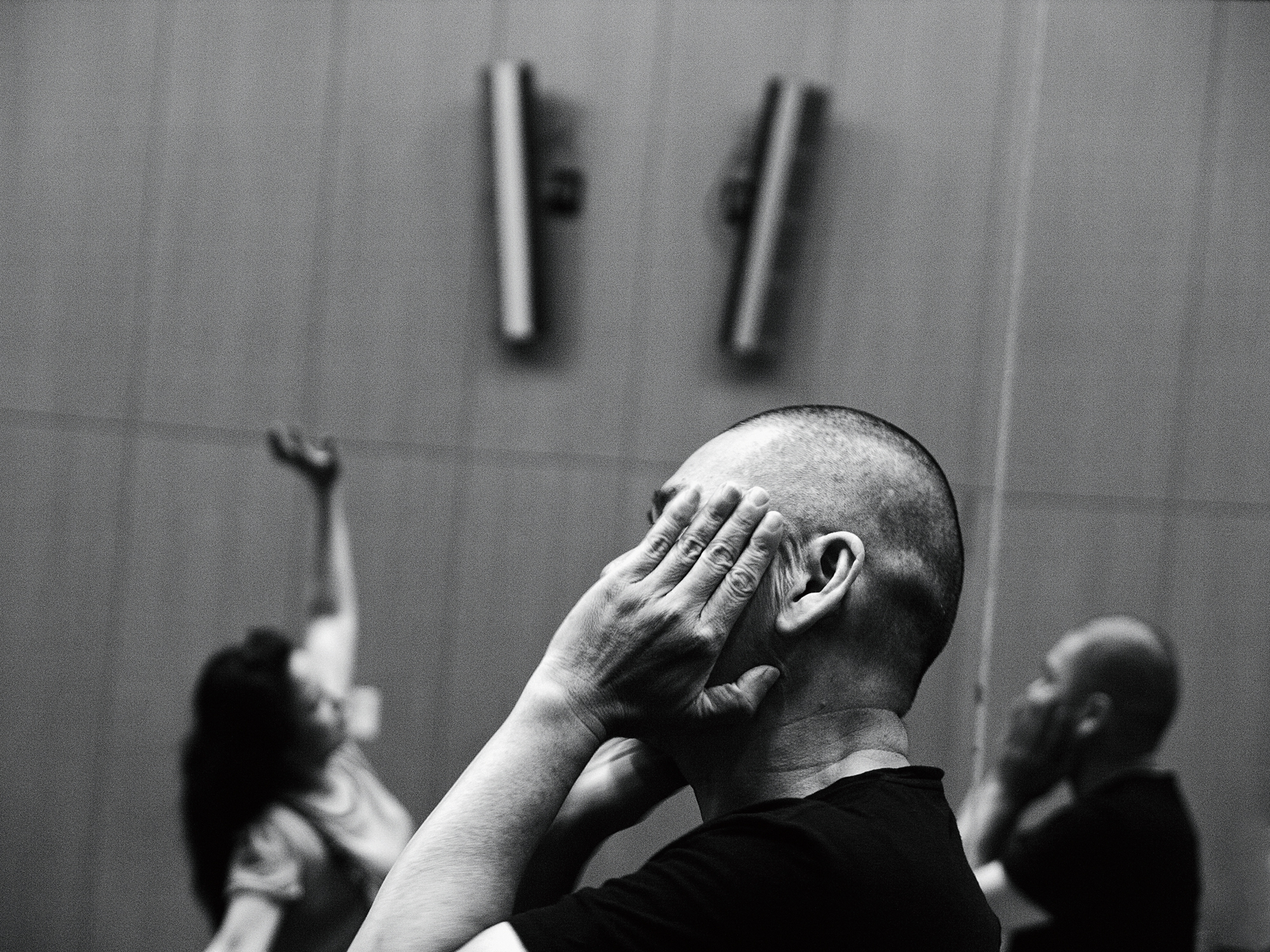 台前‧幕後 文‧黃之寅 圖‧許斌 翻譯‧陳正儀 2016 5月 EN 日本語 分享: 蔡明亮(左二)與《只有你》主角之一的李康生(右一)一同培養情緒。 排練時,身兼導演和編劇的蔡明亮若有所思。 台灣在1980年代正值經濟高速成長、社會積極開放,各類表演藝術亦百花盛開。在多變的舞台燈光下,留下活動中表演者的瞬間身影,對專業攝影師是一項挑戰。然而,幾位箇中翹楚翔實地記錄著台灣的表演藝術風景,仍持續堅持直到今日。 王墨林《長夜漫漫路迢迢》的綵排風景。 許斌,一個舞台攝影界耳熟能詳的名字。原是攝影記者出身,許斌自1992年起受兩廳院《PAR表演藝術》委任拍攝後,開啟了他戲劇紀錄的歷程。 王墨林《長夜漫漫路迢迢》的綵排風景。 有別於他人的現場演出拍攝,許斌為了讓觀者也能一窺作品誕生的過程,經常記錄幕後製作排練過程。「綵排時,導演亦是演員,是劇中的羅密歐、茱麗葉,是杜麗娘、柳夢梅……」許斌說:「導演懷著獨特的心境,並同時肩負無人能理解的壓力。」 舞蹈家蘇文琪徜徉於《微幅──迴返於生存之初》的世界中。 「小空間,大世界……是百千萬劫凝身一瞬。」許斌透過影像,試圖捕捉導演、編舞者與表演藝術家綵排時最真實的溫度。 蘇文琪為其《身體輿圖》的排練暖身。幾米《向左走‧向右走》經導演黎煥雄改編,躍上大舞台。集編舞家、導演和舞者於一身的劉守曜,正在為其獨舞作品《Shapde 5.5》作準備。 關鍵字: 表演藝術 舞台 許斌 綵排 導演 台灣 攝影 文化 人物 藝術 分享: