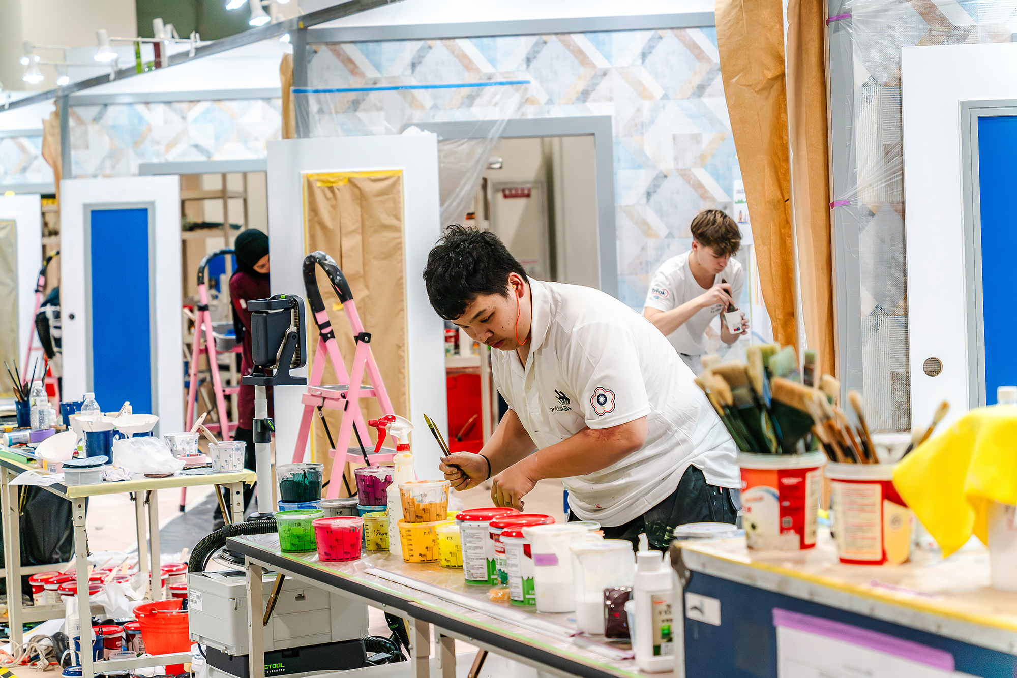 長年在教學現場的陳協建坦言,講到讓小孩學油漆,家長就會因為刻板印象中的傷身又辛苦而拒絕。但隨著技職教育體系逐步成熟,環保無毒塗料的普及,再加上技職國手在漆作項目的國際競賽中屢屢獲獎,陳協建與恩師陳殿禮共同推動更名,將原本技競項目的「油漆裝潢」改為「漆作裝潢」(Painting and Decorating),賦予漆作新的形象。如此一來,回到與歐洲相同的技術脈絡,兼具工法與藝術性。好比歐洲常見的壁畫、宮廷裡的仿石柱皆屬漆作的範疇,已有百年歷史。