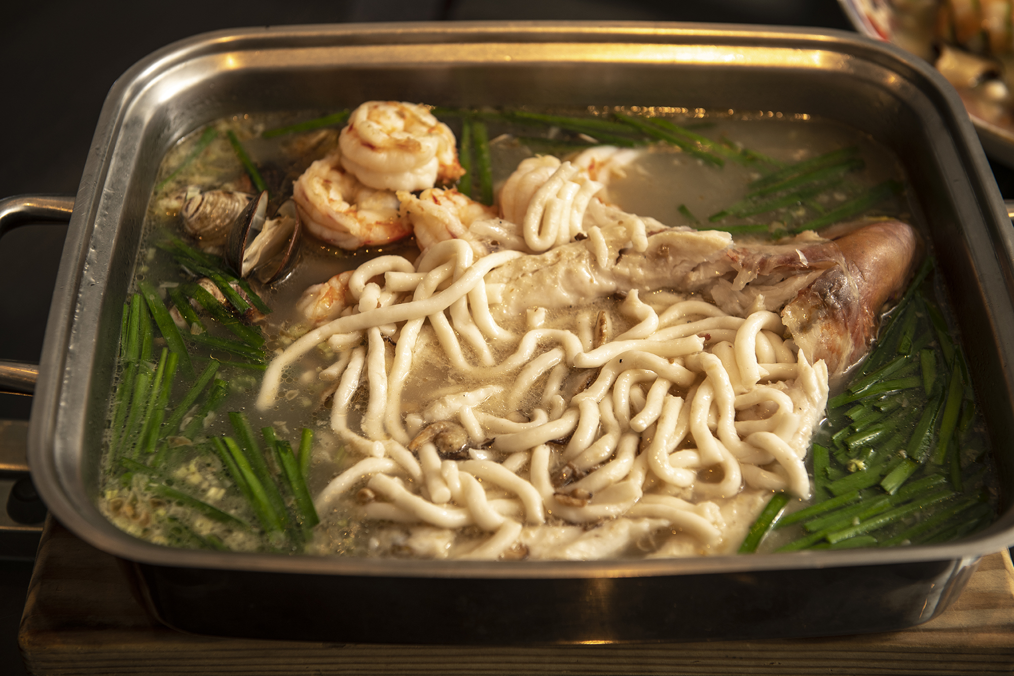 她確實做到了。山海樓在米其林評鑑連續三年獲得一星,即是重要證明。疫情前,客人有三至四成都是國際旅客,讓他們垂涎而來的目標,都是足登大雅之堂的台式功夫菜,包括了由昔日台菜酒家「蓬萊閣」老師傅親自傳授的「掛爐燒雞」,必須使用放養模式達兩公斤重才宰殺的母雞,口感柔韌、滋味噴香;或者是融合了台菜代表性「套疊」手法的「山海珍寶鮮魚」,魚身剖開去骨,填入米苔目,再以豬油網包裹,另有蝦米、文蛤與明蝦同煲,台灣山珍海產的鮮甜盡融一爐。