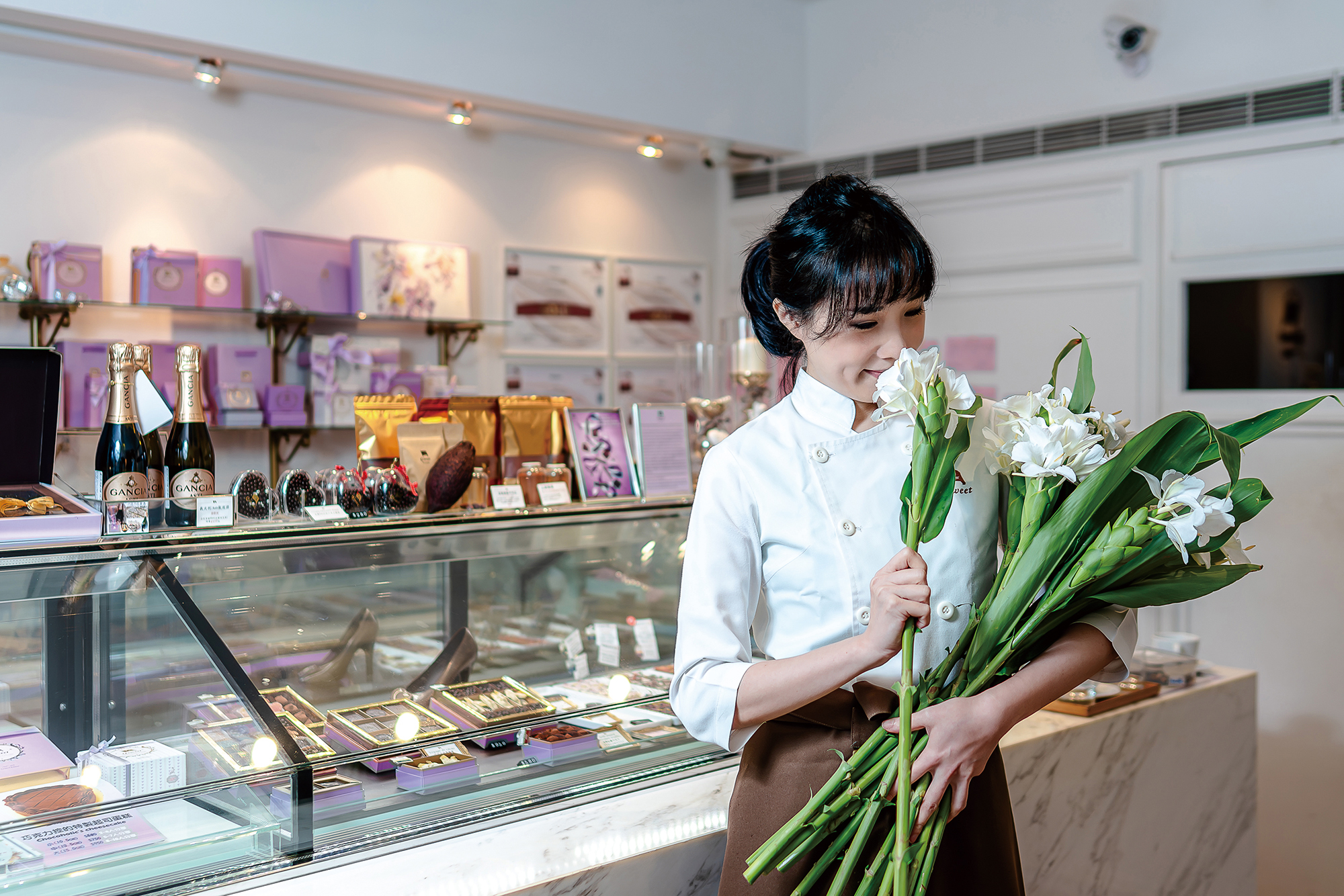 秉持精品巧克力追求好的原料的精神,她嚴選台灣食材,「台灣有很好的水果,新鮮的芒果、荔枝、鳳梨。百香果的品質讓法國人驚豔,還有香港人不認識的桑椹,台灣也是全球少數產青梅的國家。同時,我們還有在地產的五榖根莖雜糧、花卉,以及原住民的辛香料。」
