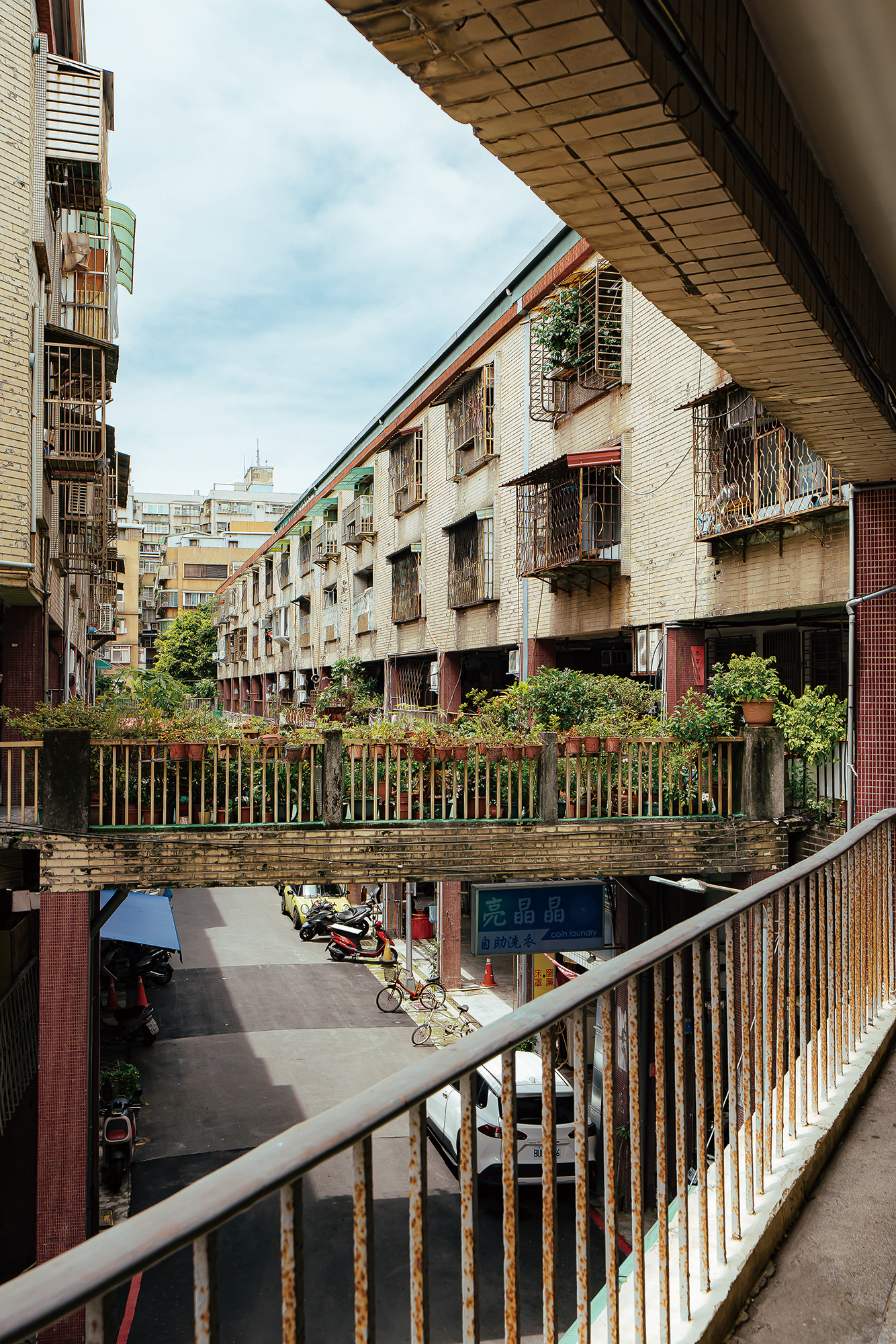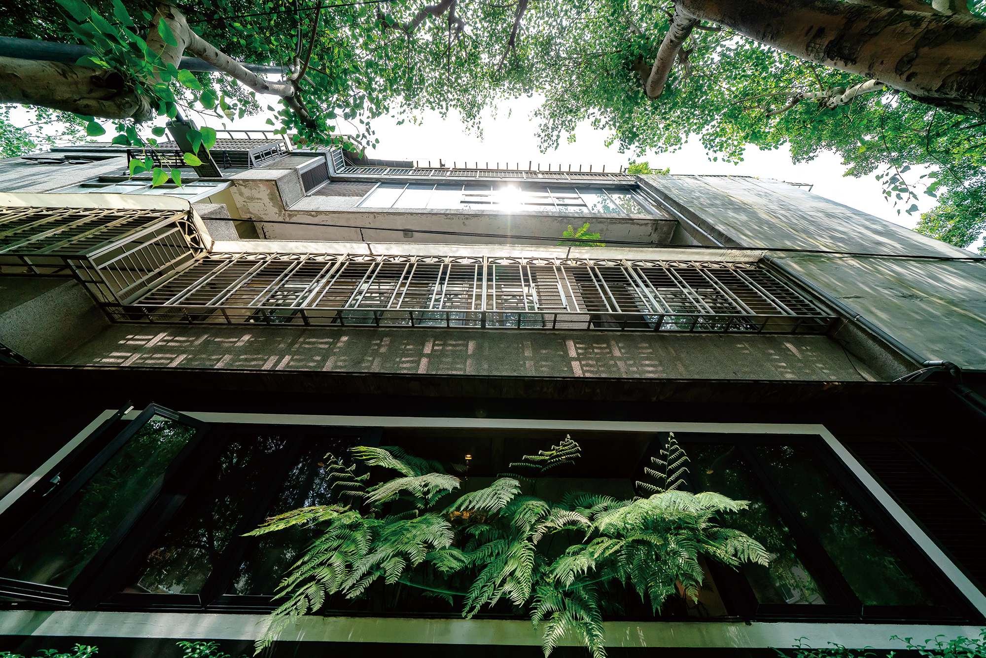 西洋と違うのはベランダの様相だ。西洋では屋外に面したベランダは遠くを眺めたり、お茶を飲んだり、景観を楽しんだりする場所である。しかし台湾は熱帯、亜熱帯に属するためか、台湾人はベランダでさまざまな鉢植えを育てる人が多い。1階の住人は小さな庭に大樹を植えることも多く、それが大きく育って上の階まで届くようになっても上の住人がそれを気にすることはなく、通り全体が緑に覆われることとなる。