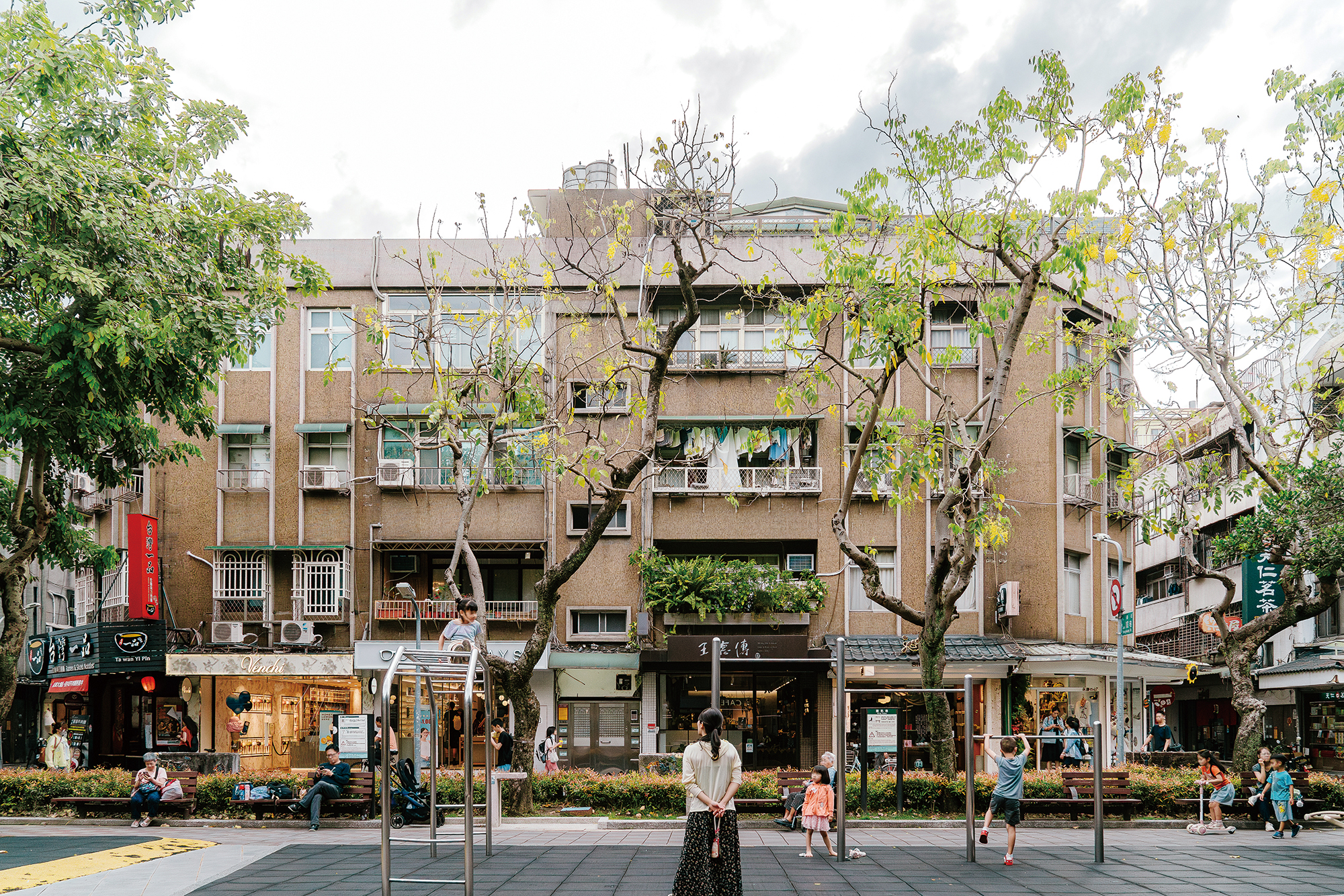 この民生社区には近年、最先端のファッショナブルな店も進出するようになり、商業化が進んでいるが、道路がT字型に配置されていることから、大量の車両が通り抜けることはなく、昼間もやはり静かな住宅地の雰囲気を保っている。