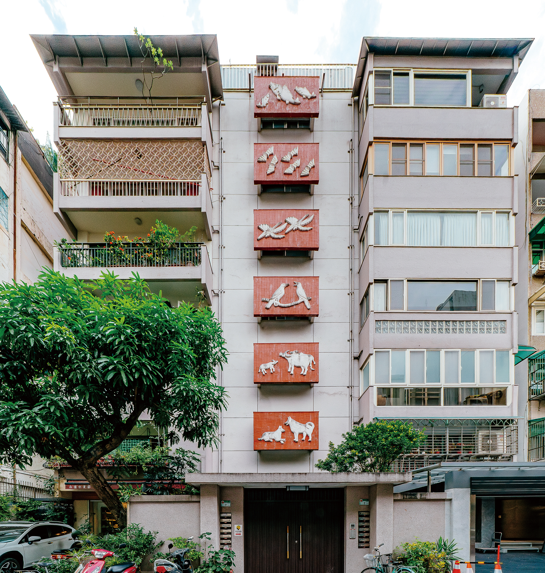 こうしたデザインは、公寓が量産された時代のモダニズムが主張する機能優先の原則には反する。「当時の西洋の集合住宅建築を見ると外壁はシンプルな灰色で、構造的機能を持つ赤レンガや色のついた窓枠があるだけです。それに比べると、台湾ではタイルを貼ってあり、モダニズムの構造にカラフルな衣を着せたかのような装飾性や折衷主義が見られ、思いのままに装飾が施されています。こうして見ると、当時これらの公寓が建てられたのは現代化(modernization)のためであって、モダニズムとは関係がなかったように思われます」と林君安さんは言う。