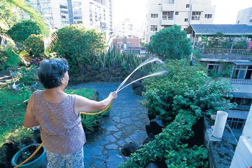 ヒートアイランド現象が起る都市部では、屋上に緑の庭を設けたり断熱ブロックを敷くことでかなりの省エネができる。