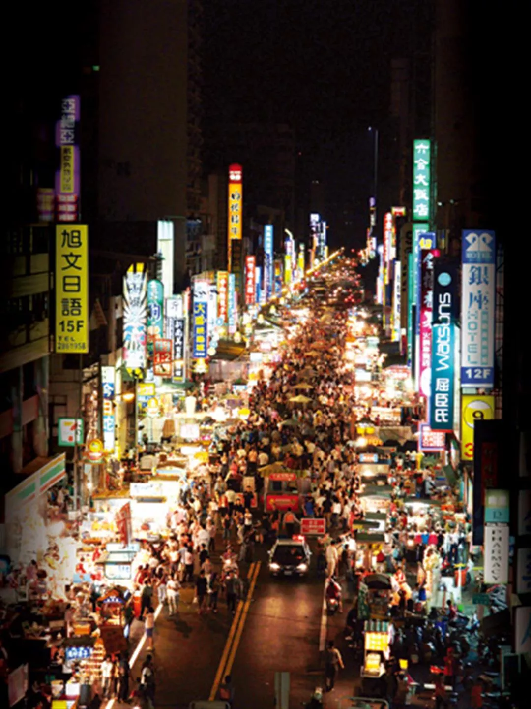 日が傾き、灯りがともり始める頃、台湾の都会から田舎町まで、300を超える夜市がにぎわい始める。通りの両端に「車両通行禁止」の柵が置かれると、そこは「屋台街」となる。数百メートルにわたる空間に、万に上る住民や観光客が押し寄せ、真っ直ぐ歩くこともままならないほどだ。