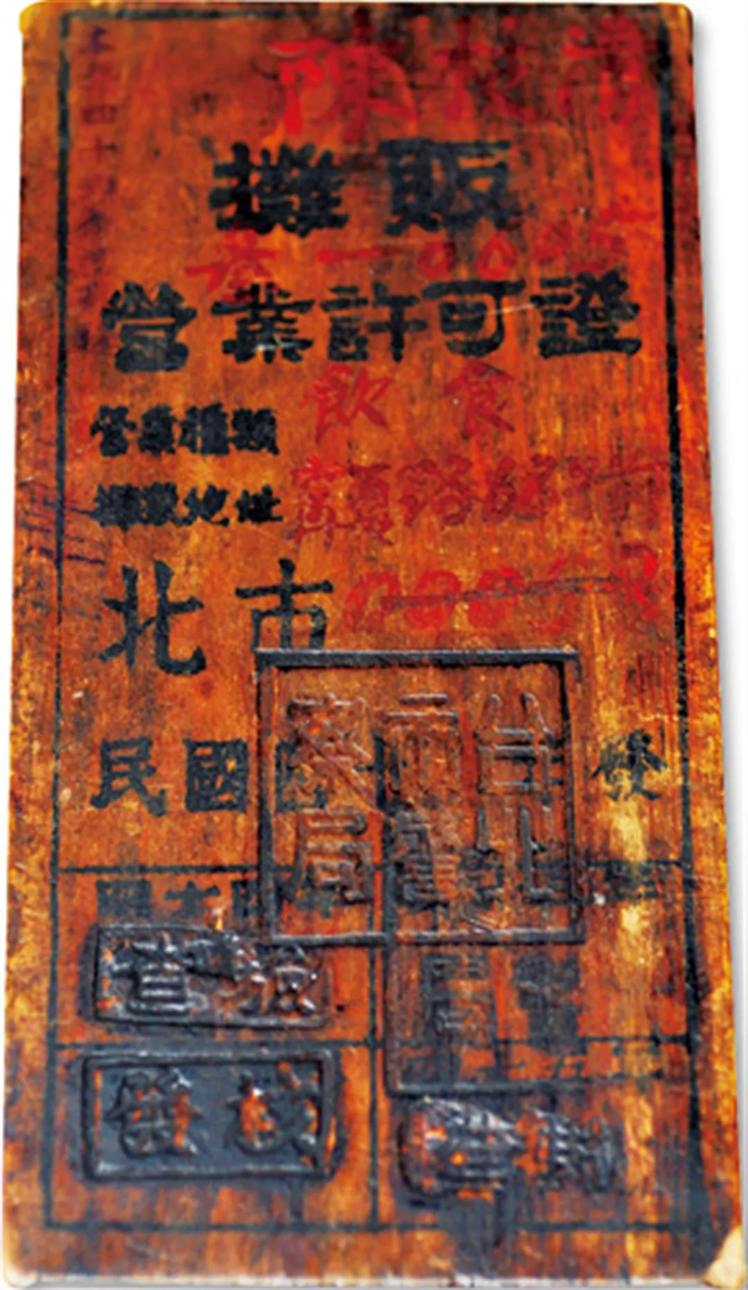かつて警察が発行していた露店営業許可証。毎年検査が必要だった。