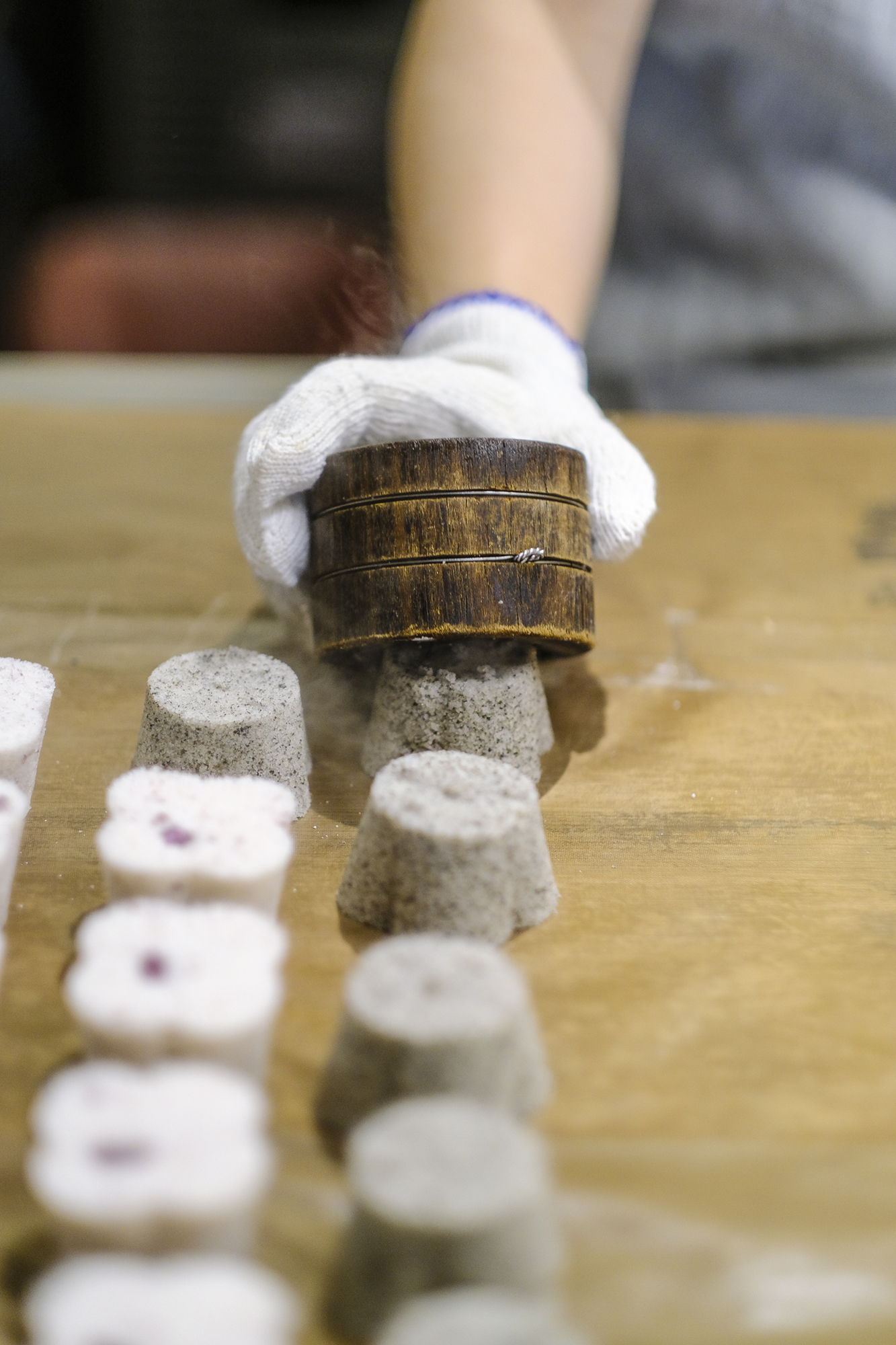 そして舞台の主役である鬆糕にもきめ細かな演出がなされている。鄭匡佑夫妻は当初、鬆糕の小さい木型を作る機械を探して食品や機械の見本市を巡り、数えきれないほどの失敗を繰り返し、ようやく鬆糕が上手く仕上がる型を作り出すことに成功した。