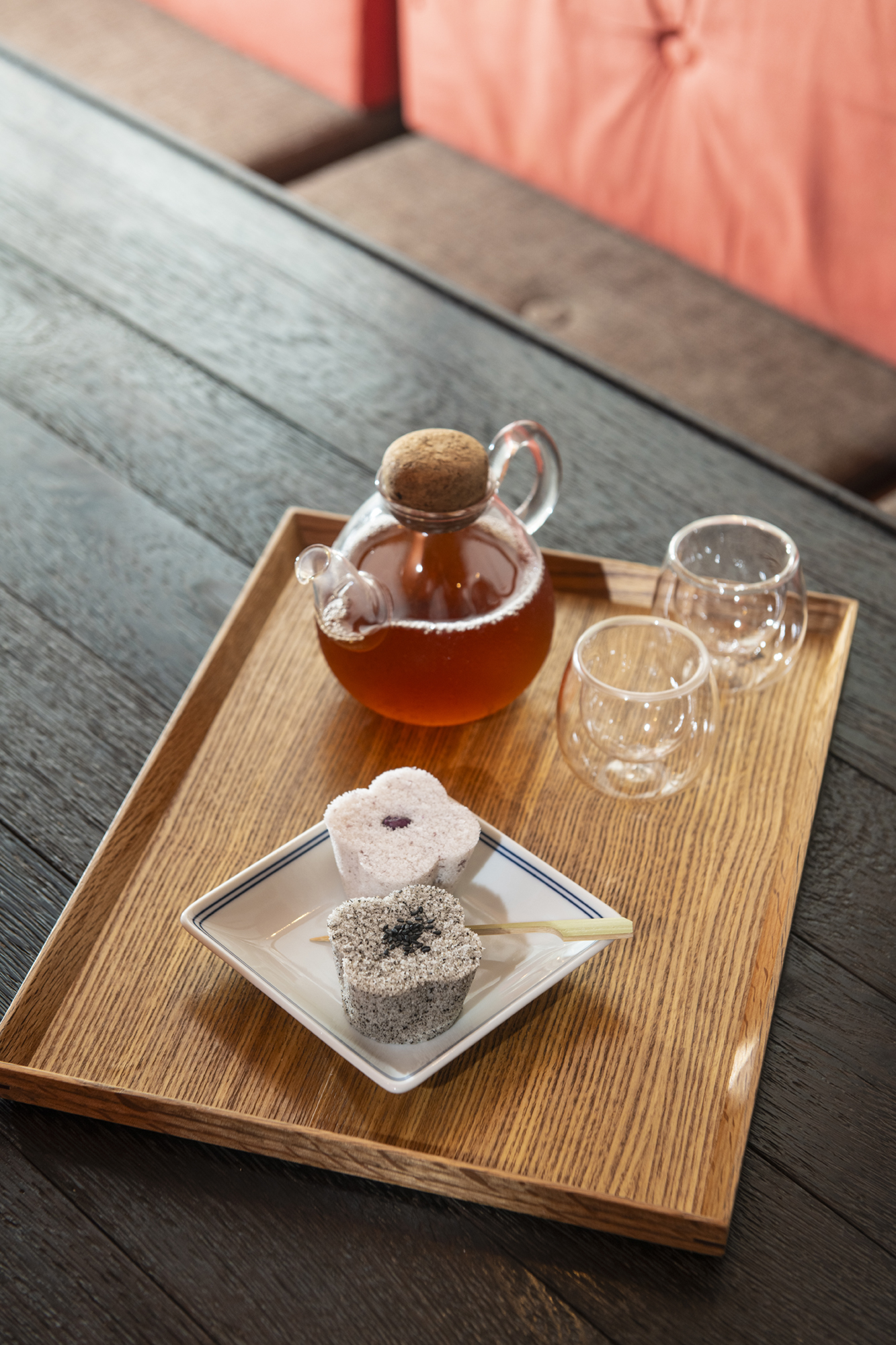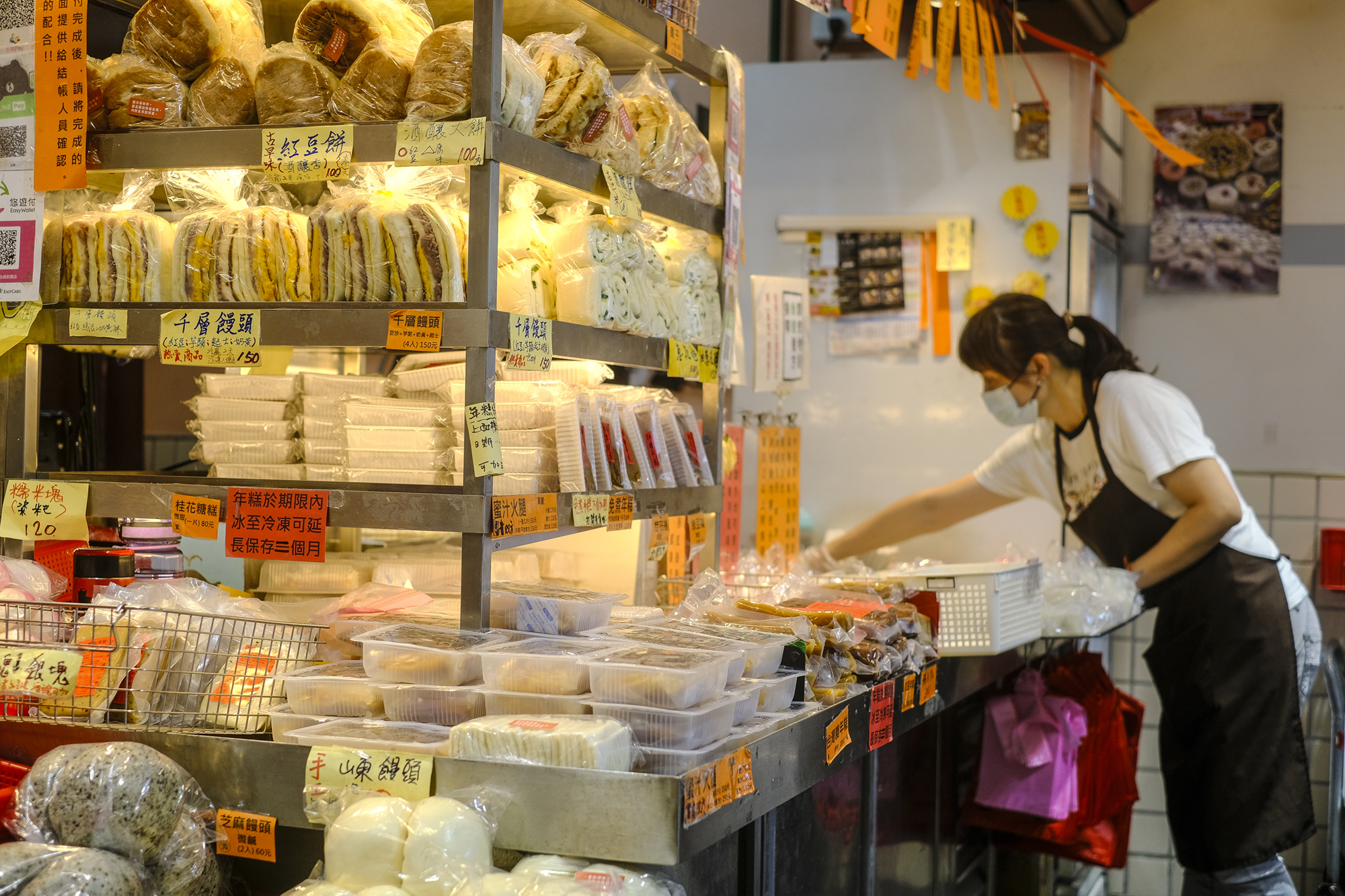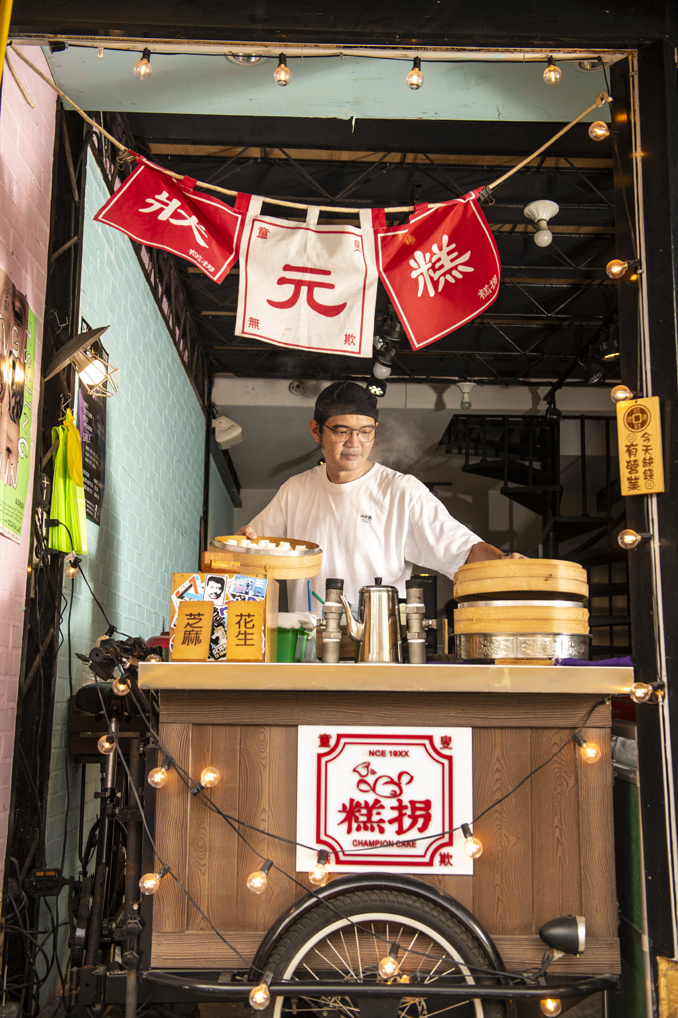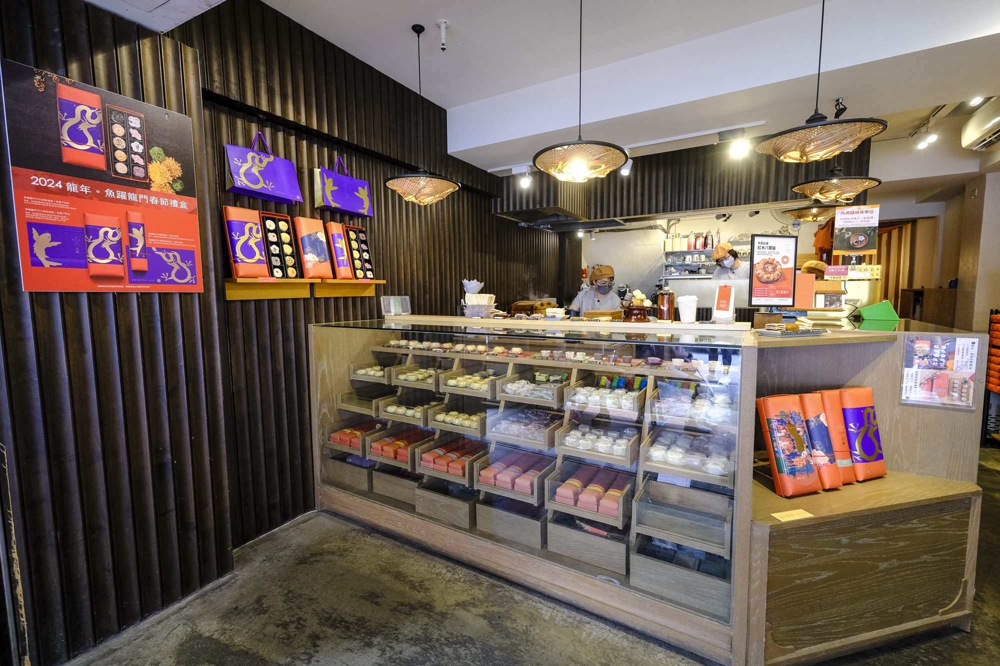 伝統に新たな衣を着せるというアイディアは、新旧のスタイルが融合する迪化街の特徴ともマッチする。店の入り口にかけられたオレンジ色の暖簾や、試食用の鬆糕に添えられた竹の菓子切り、それにギフト用パッケージの赤い糸の縫い目などは、鬆糕に大稲埕の衣を着せるイメージで演出されている。