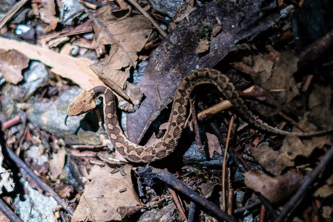 ようやくカメラの前に姿を現わしてくれた野生動物——ハブモドキ。