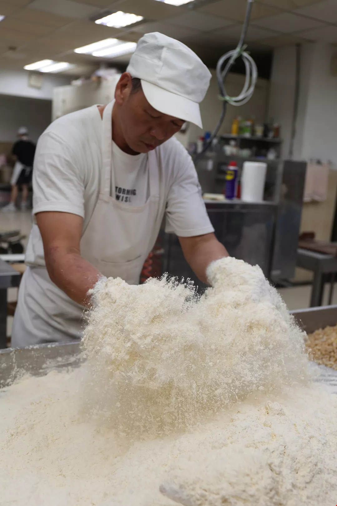 ラードを撹拌し過ぎると溶け出してしまうので、「竹塹餅」の具は慎重に手作業で混ぜ合わせる。