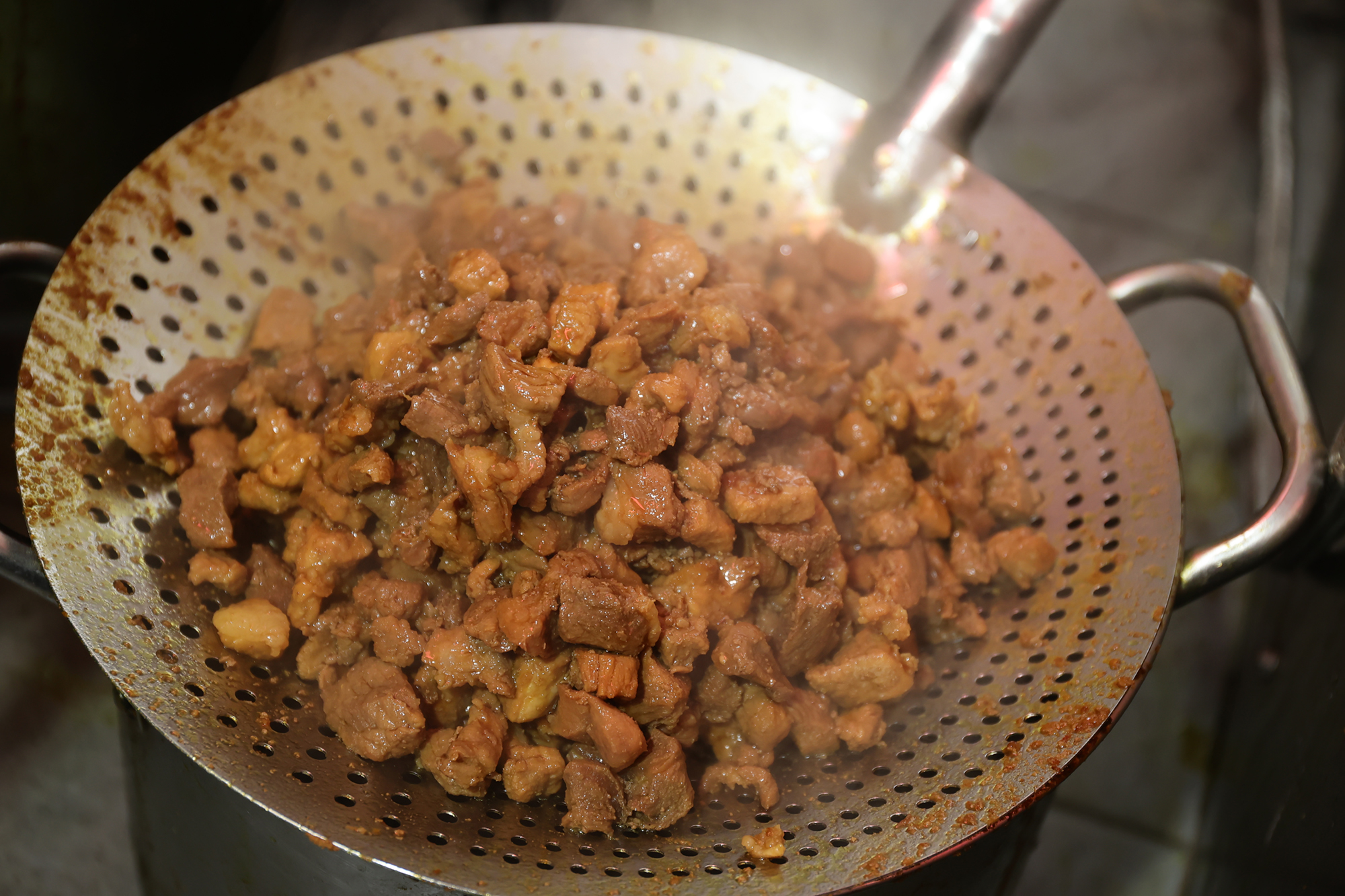 「大新餅店」の秘伝のタレで繰り返し煮込まれ、うま味を吸収して脂の光沢を放つ肉。