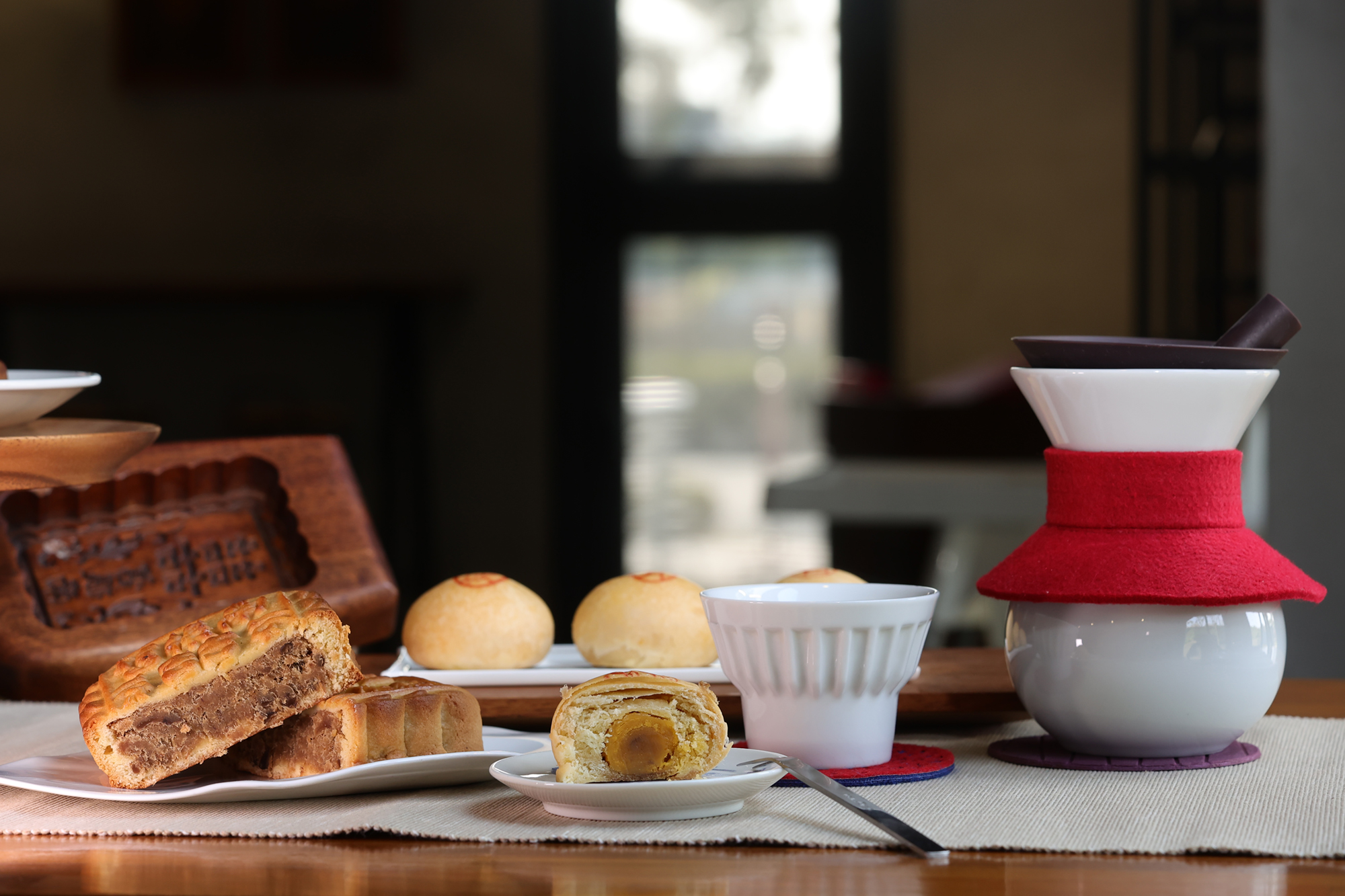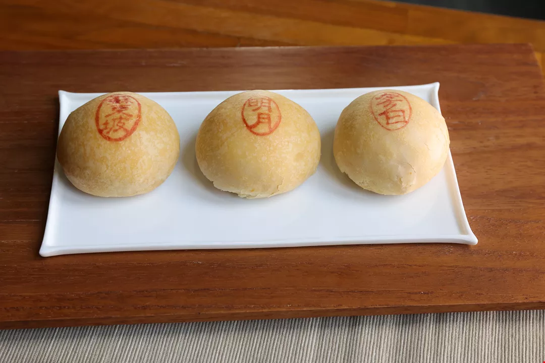 旧振南餅店で最も人気のある「緑豆椪」には、肉そぼろ入りの「蘇東坡」や、卵黄が丸ごと入った「明月」、甘い餡だけの「李白」がある。