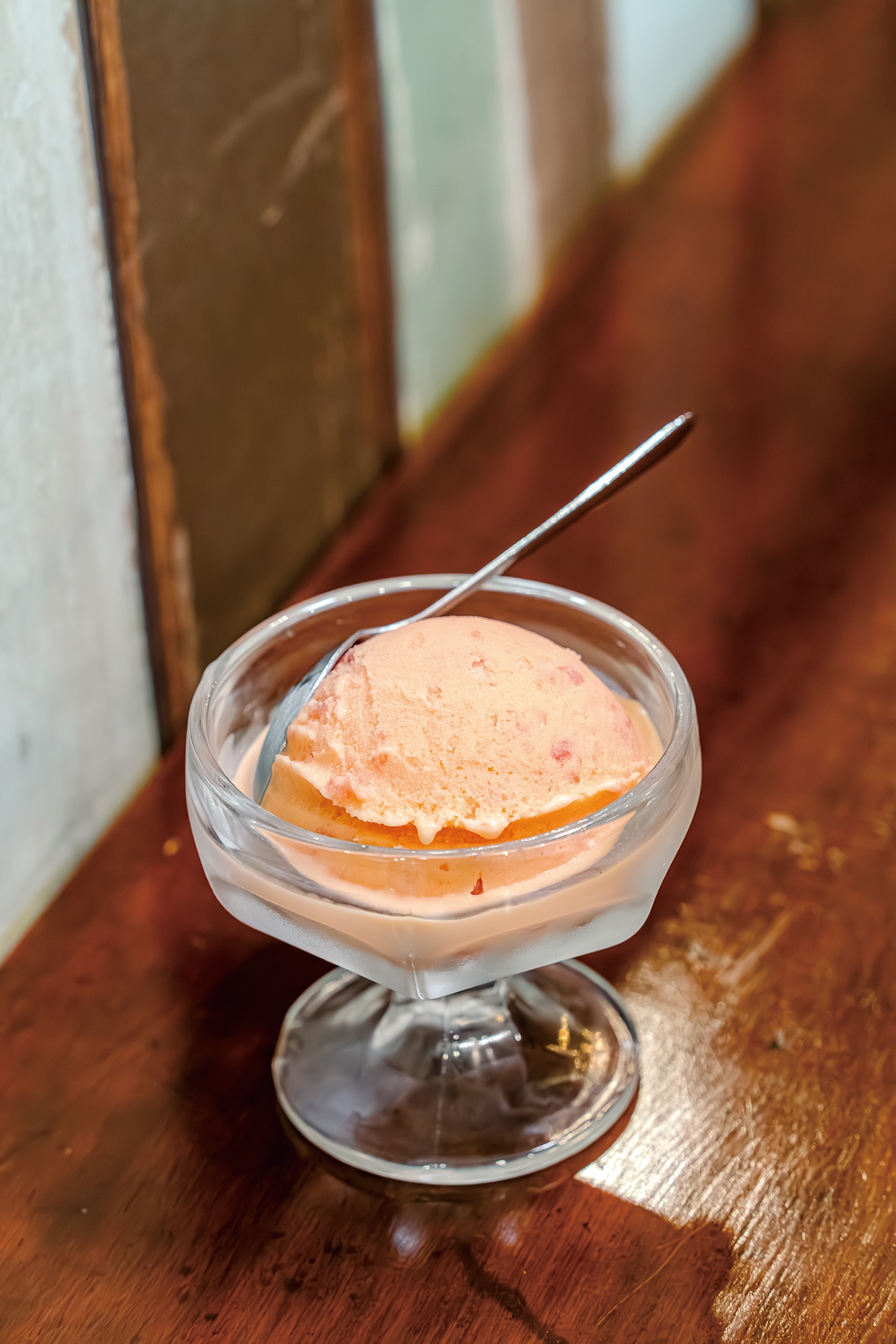今回の主役は台湾式アイスクリームだ。欧米諸国で一般的なアイスクリームといえば、バニラやチョコレートといった味が定番だろう。だが台湾のアイス店に足を踏み入れると、タロイモ、小豆、パイナップル、リュウガン、ピーナッツ、砂糖漬けのスモモと、地元の食材を生かし、より自然な風味が前面に出ている。伝統的な台湾式アイスクリームに乳製品は含まれず、代わりにデンプンを混ぜて成形を助け、口当たりを軽やかにしている。また、台湾人の創意工夫によって、豚肉でんぶや豚足、麻油鶏(鶏肉を米酒とごま油で煮たスープ)、バジル、ニガウリまでもがアイスクリームに変身してしまう。突拍子もなく思えるが、ひと口味わえば意外な驚きがある。