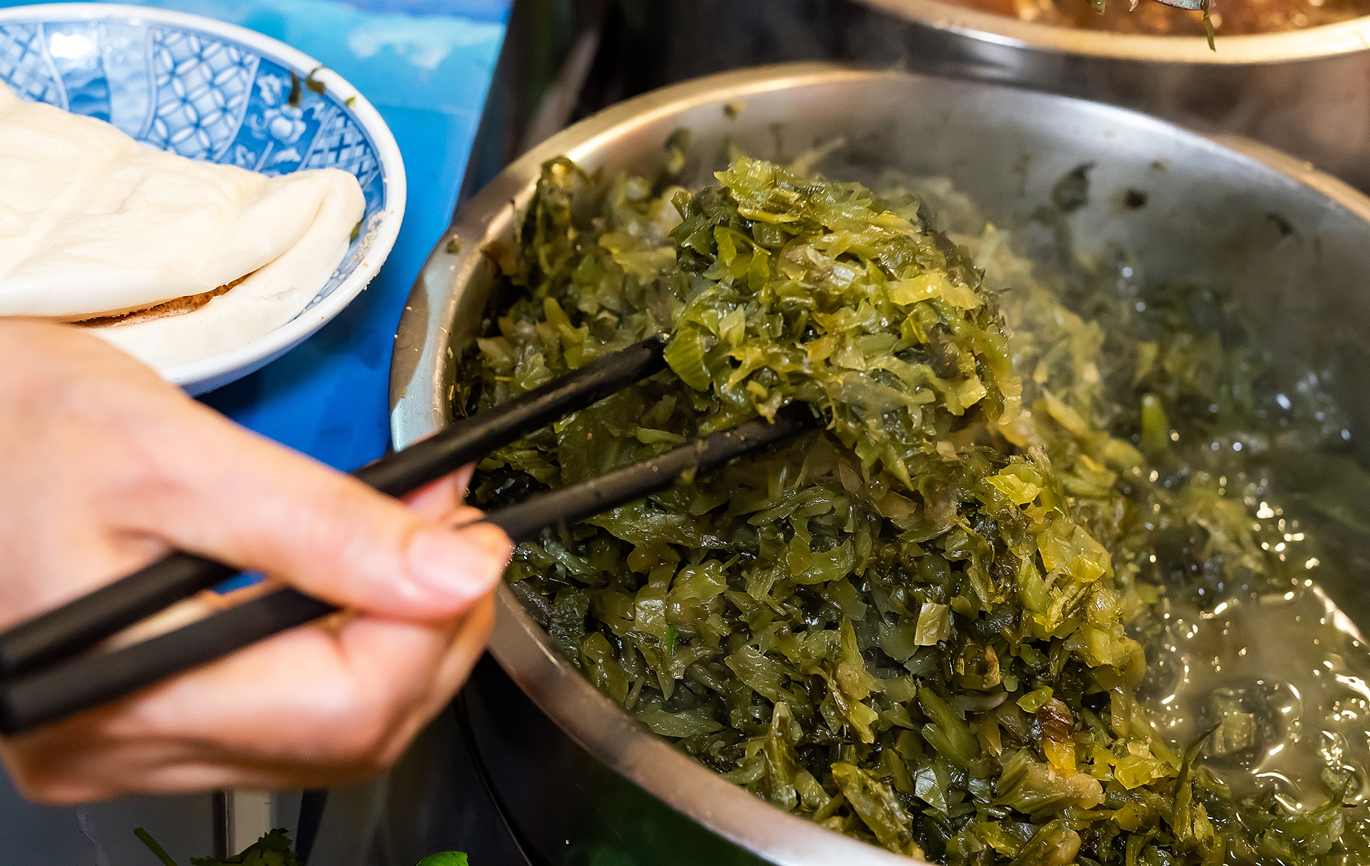 ピーナッツ粉、高菜漬け、香菜は刈包の定番のトッピングだが、店によってそこにも独自の秘訣があり、独特の味を出している。