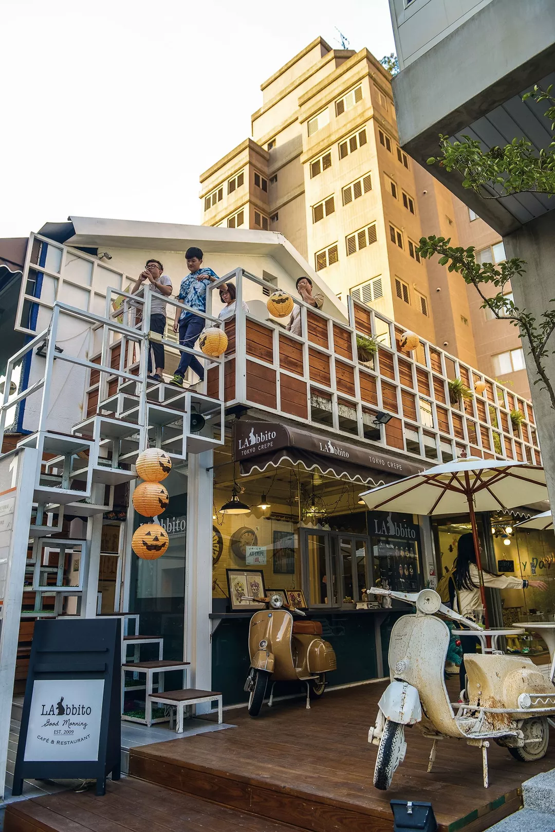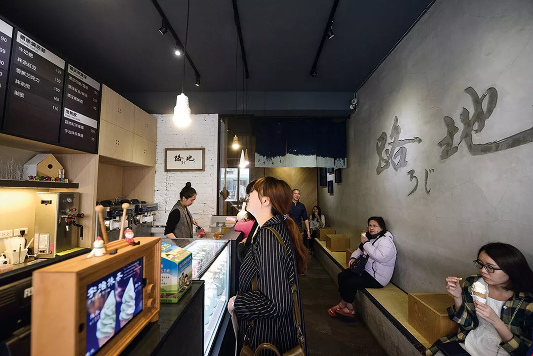 人気の高い日系のアイスクリームショップは、ショッピングモール内ではなく、裏通りに店を開き、新旧が共存するこのエリアの雰囲気に溶け込んでいる。