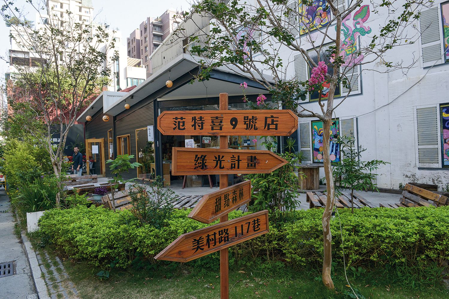 范特喜は草悟道一帯にライフスタイル・コミュニティを築き上げた。新手書店の入り口に立つ標識は、リノベーションされた店舗の方向を示している。