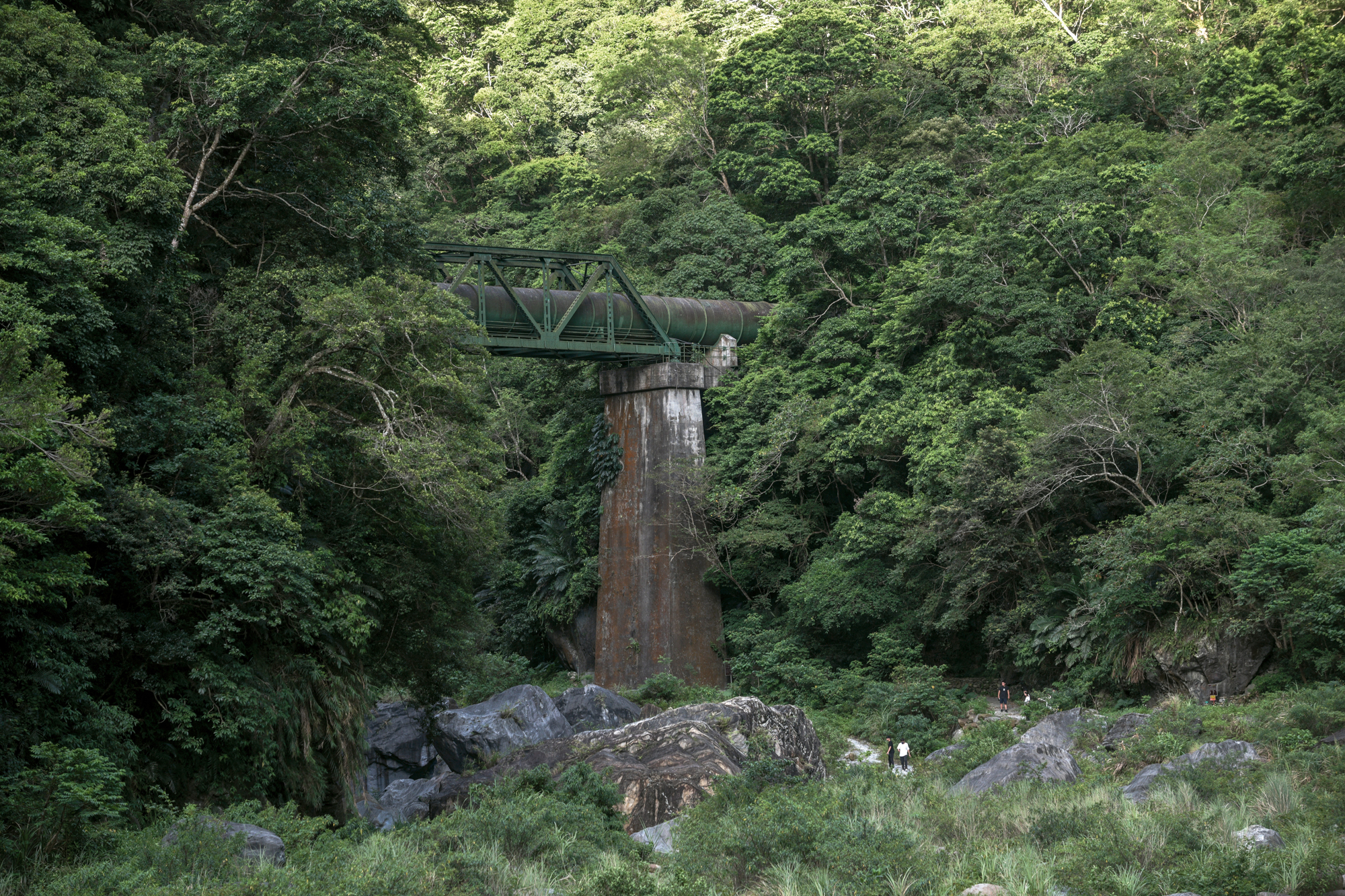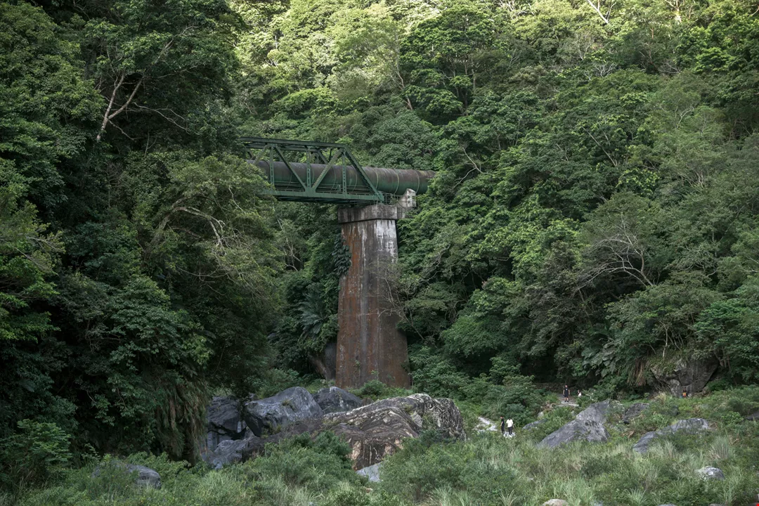 砂卡礑歩道の中ほどには、日本統治時代に砂卡礑渓の水を送った巨大な水道施設がある。