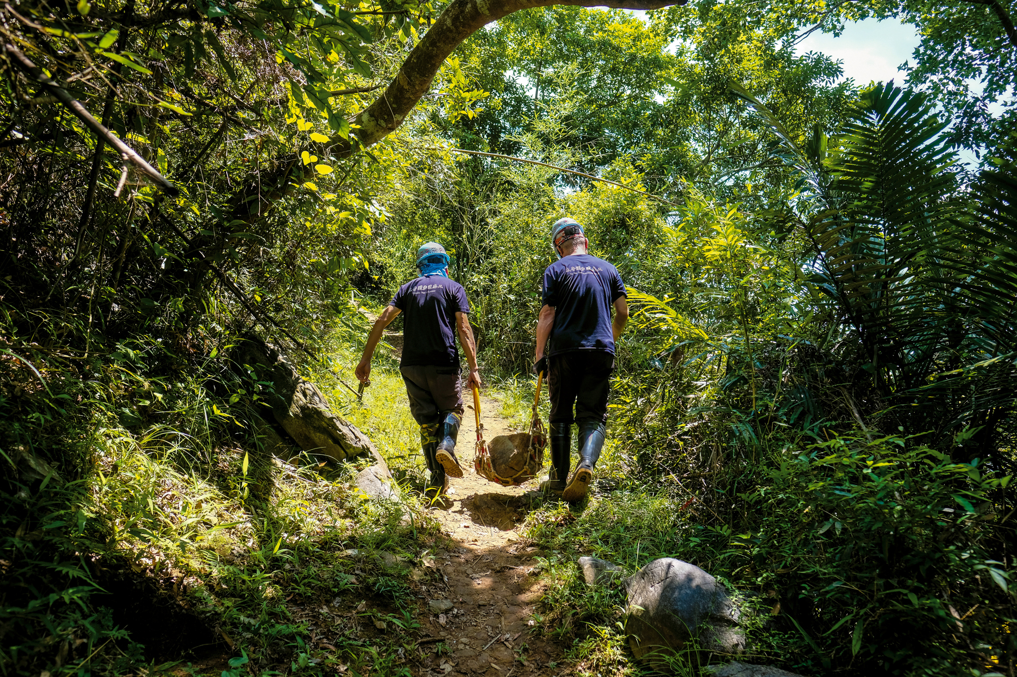 起伏の少ない砂卡礑歩道も、高低差の大きい錐麓古道も、どちらもボランティアが手仕事で作ったり補修したりしたものだ。だが登山道は自然に溶け込むことが求められるので、登山客がそれに気づくことはほとんどない。この陰の功労者たちはボランティアになって12年、生態保護やガイドのボランティアを兼ねる人も多い。林国文はチームの中で最も経験豊富、メンバー間の調整に長け、作業の順調な進行に貢献している。江曽為真は、登山道補修の話をガイドの解説に盛り込み、補修が生態系保護を考えたものであることを皆に知ってもらおうと心がける。陽明山国家公園の生態保護ボランティアでもある方瑞凱は、太魯閣の美しさに魅了され、この地を離れられなくなった。難度の高い登山道に挑戦するのが好きな張朝能は、客に褒められて達成感を得ている。