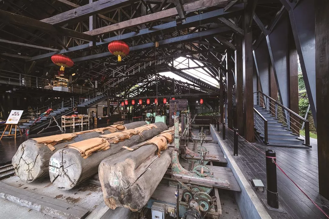 孫嘉璐さんは私たちを連れて、昔の木材加工の動線を案内してくれた。「昔は丸太を運んできた後、まず貯木池に浮かべ、そこからお客さんが選びました」と言う。池の傍らにある木造家屋が昔の「資材課」だ。その話によると、お客は池に浮かんだ丸太に乗って足で転がしながら木の状態を確認したので、ずいぶん時間がかかったそうだ。「以前は、お客様を資材課の建物に案内してお茶を出して休んでもらっていましたが、その空間は今は『隠茶Steam』という湖畔のレストランになっていて、南投県特産のお茶を観光客に出しています」と言う。