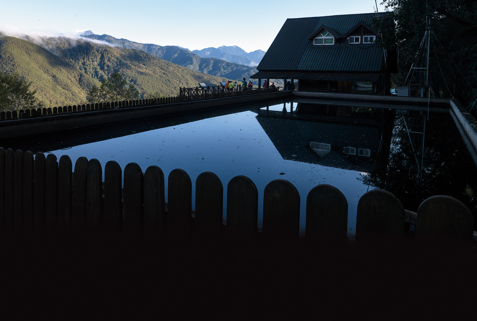 雪山登山口にある貯水池。水面に映る景色も美しく、絶好の撮影スポットだ。(荘坤儒撮影)