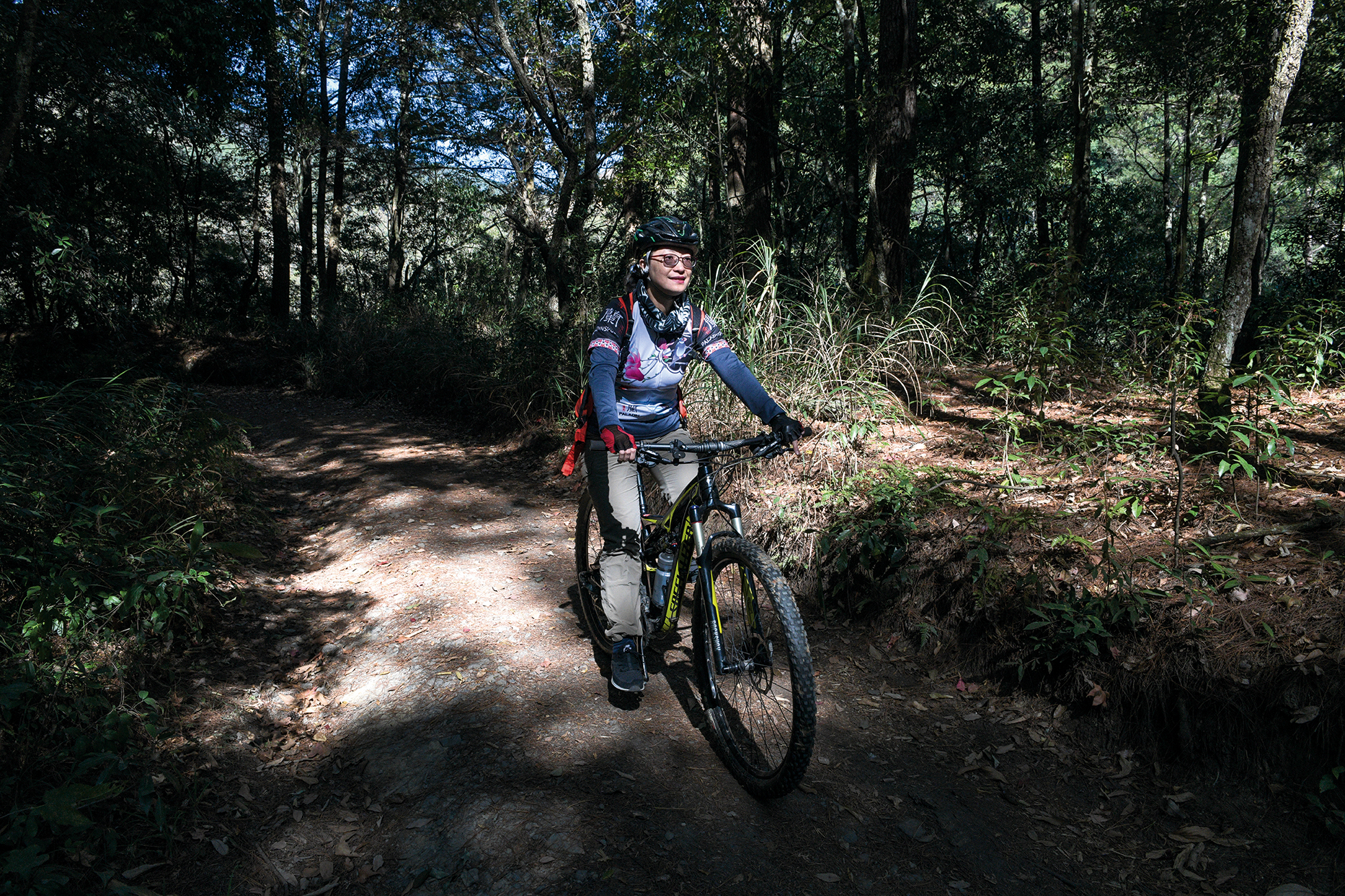 70歳の張さんはバイクに乗り、昔の狩り道「蒐鹿歩道」に案内してくれた。台七甲線66.5キロ地点にある大剣山登山口から入った砂利道はクロスカントリー・サイクリングに最適だ。途中、厚く積もった「松葉絨毯」の上も走る。道は1920年頃に日本軍が先住民を虐殺した場所まで続く。