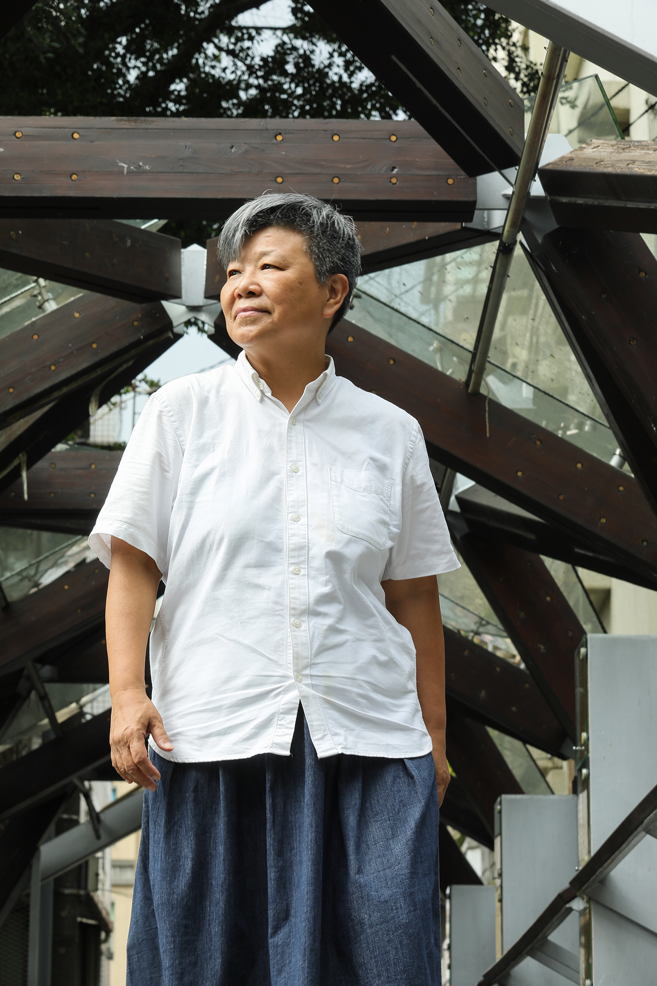 「私は、眷村(1949年に国民政府とともに大陸から移住してきた軍人やその家族が集まって暮らしたエリア)のような近所同士が気軽に行き来する人間関係が懐かしいのです」と姜楽静は言う。彼女はそのような理想を設計に取り入れた。本来の都市機能として敷地内の通りを残し、公営住宅は2棟に分け、それぞれが独立しつつ広いスペースでつながるようにした。「1フロア当たり10世帯ほどというのが最適の数です」と姜楽静は説明する。これぐらいなら隣近所が互いに知り合いになれるが、10世帯を超えると見知らぬ関係になりがちだと言う。