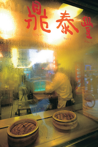 湯気で曇る「鼎泰豊」の厨房では職人が休むことなく小籠包を作り続け、多い時には一日に1000蒸篭も売る。永康街で最も有名なレストランだ。