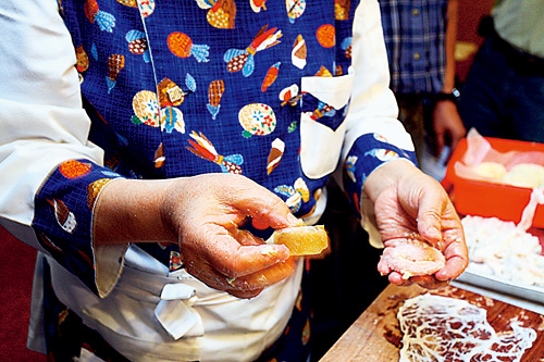 食材が珍しいだけではない。酒家では手間のかけ方と見栄えが重視される。「色、香、味、形、器のすべてを重視します」と話す阿忠シェフは、仏様に金の衣が必要なように、料理も化粧を施さなければならないと言う。例えば「孔雀開屏」や「彩虹蜈蚣蟳」などは、シェフの包丁の技と忍耐力が試される華やかな前菜だ。