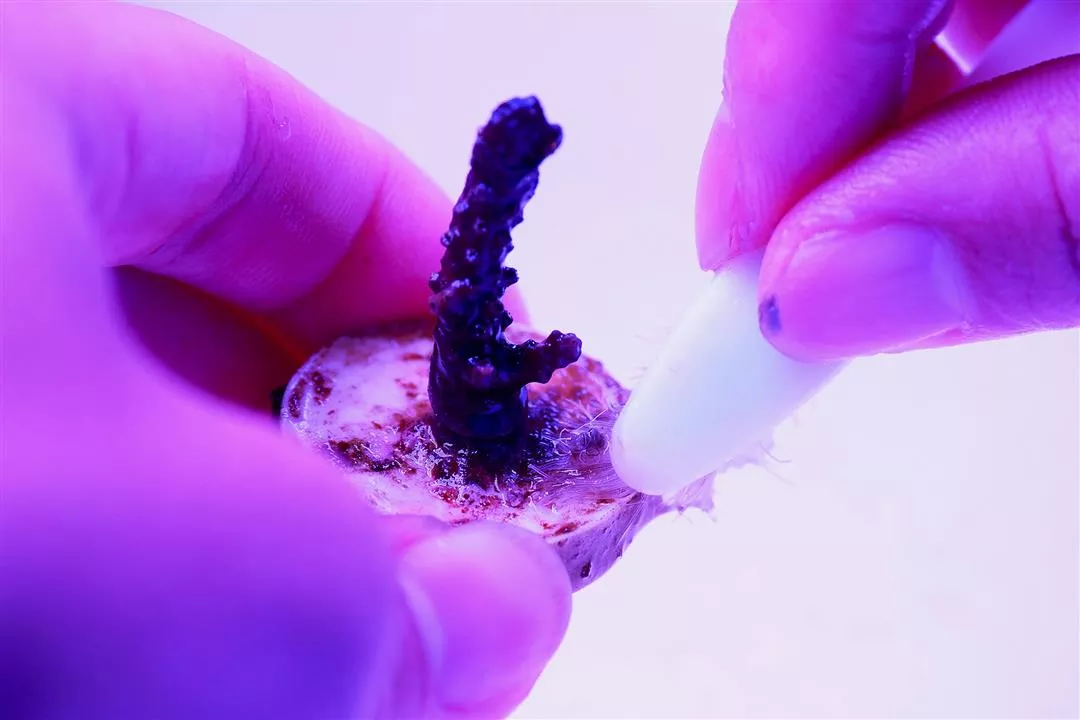 小さなサンゴの苗を育てるためには、数えきれないほどの繊細なケアが必要になる。