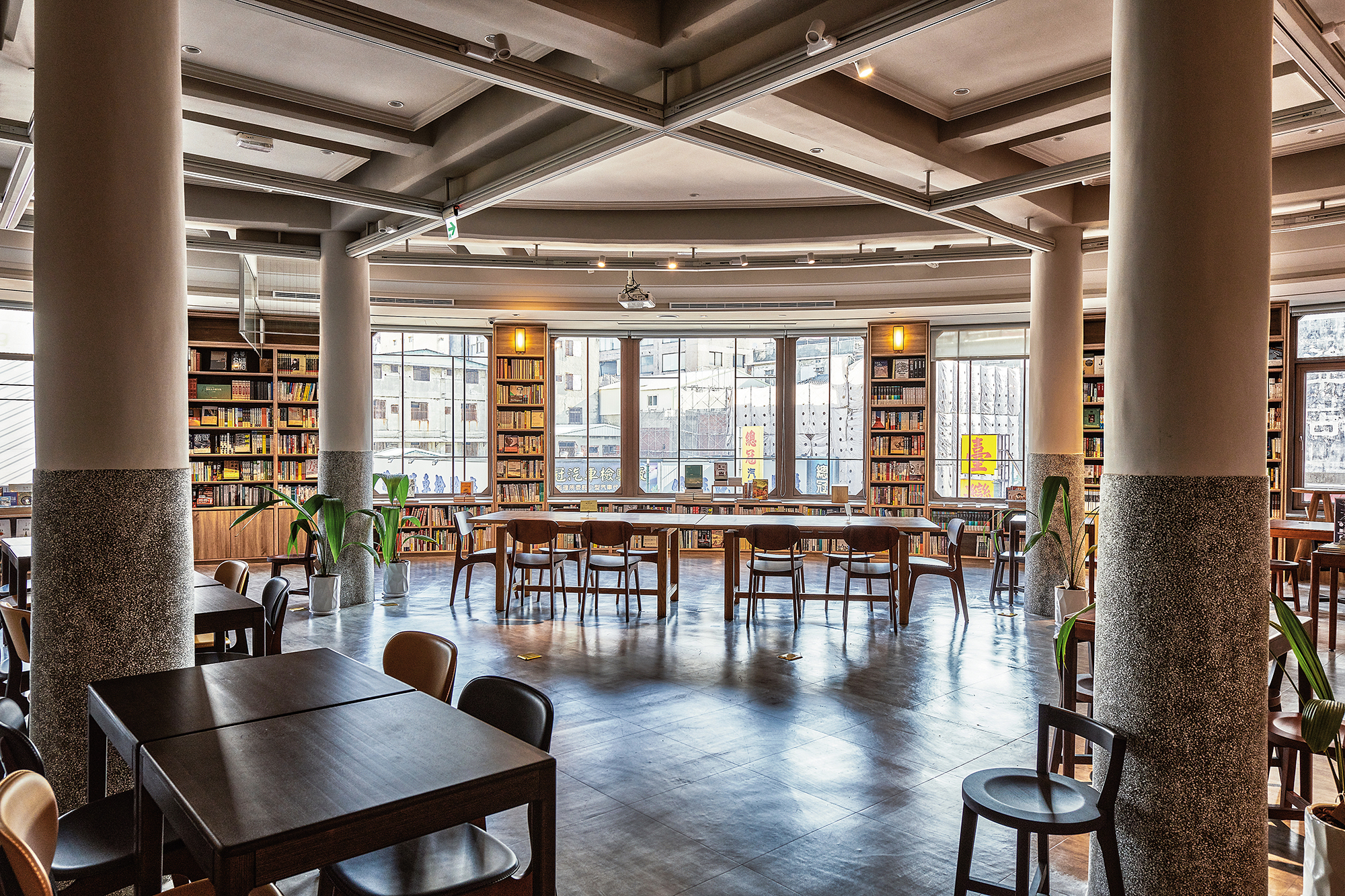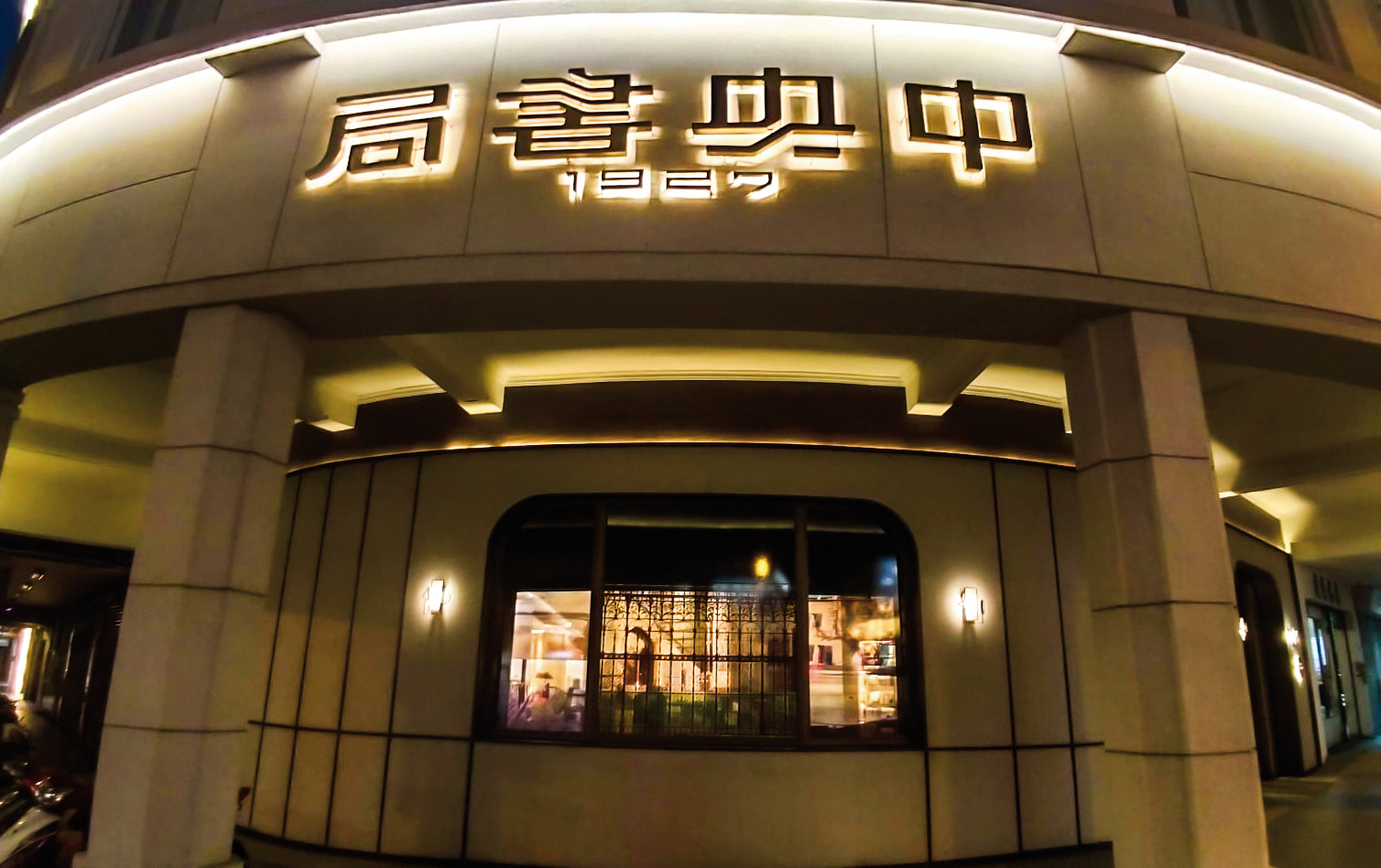 ここに建つ中央書局は3階建ての古い建築物で、外壁はクリーム色、角地の2面が窓になっていて優雅な空気を醸し出している。壁面にはレトロな書体の看板がある。