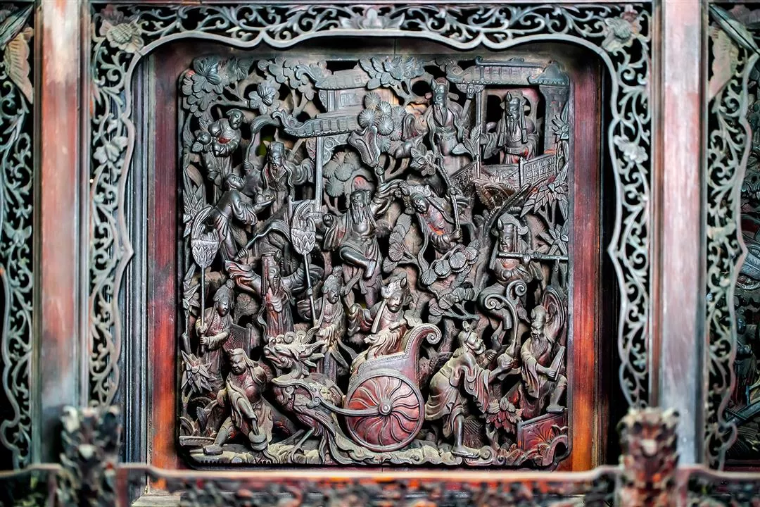 神轎工芸研究者の姚さんによれば、初代神轎の素晴らしさは、構造とフォルムが重視され、職人が透かし彫りの技法を多用して神轎を軽量化したことや、六角形の開口部にいずれも趣向が凝らされ、信徒がどの方向から見ても内部に鎮座する荘厳な神が見えるようになっている点にあるという。陳應彬がこらした斬新な工夫に気づかされる。