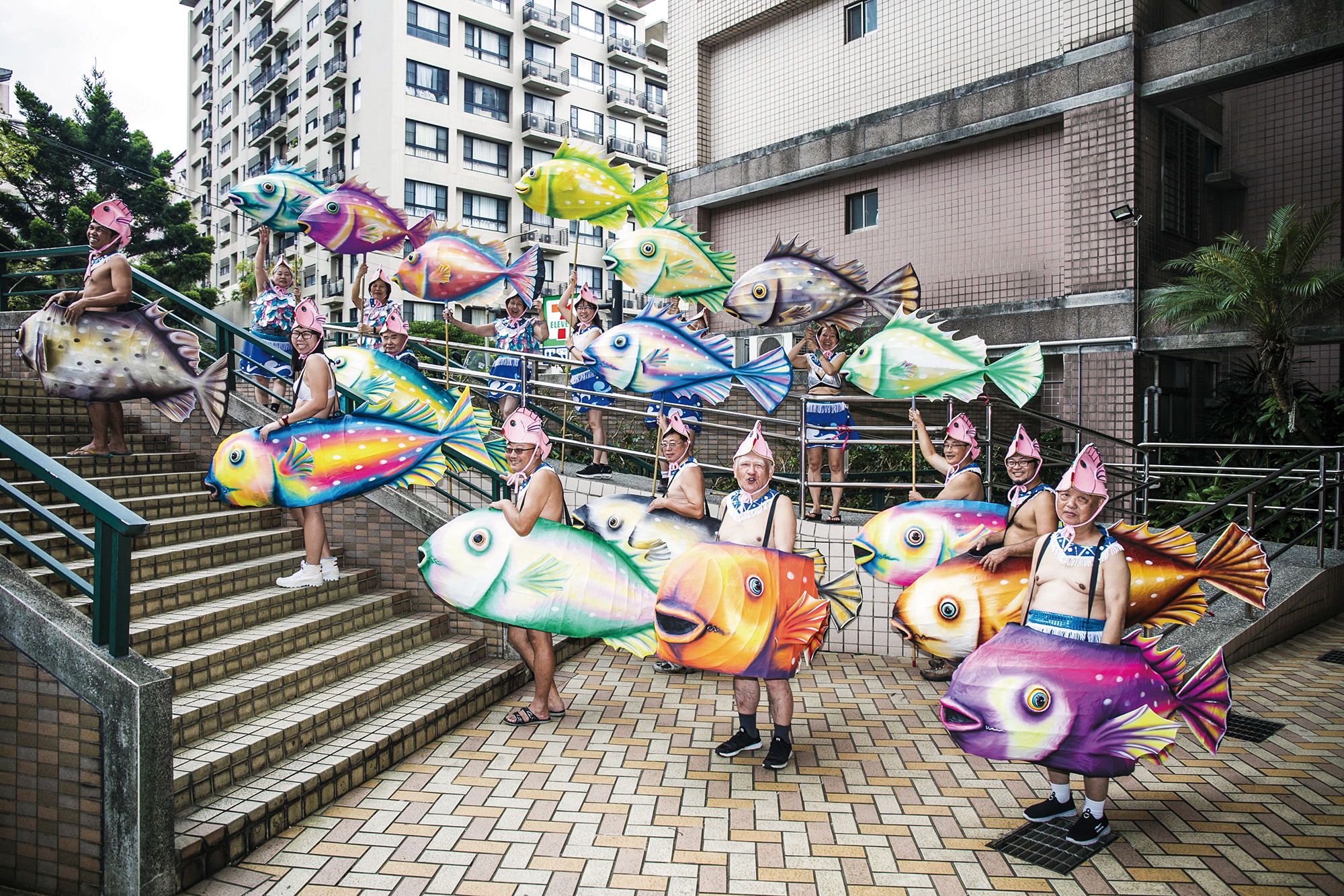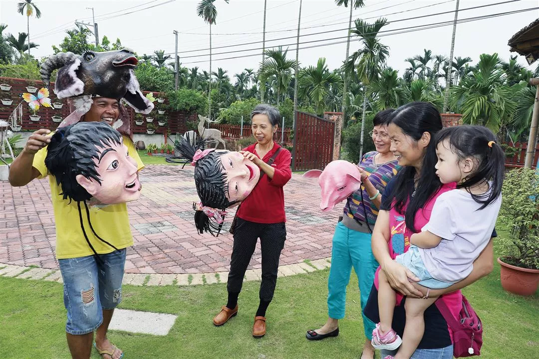 「最初は地域の人々も私たちを知らず、興味深そうにのぞき込んでいました」と言う。そんな時は中に入ってもらい、言葉を交わすようになった。住民たちの理解も深まり、楽雅琪は三共地域の物語をたくさん聞くこととなる。そこで彼女は地域で一緒に演劇『戯説三共』を制作することを提案した。脚本も道具も役者もゼロから作り上げるのだ。ワヤンは、登場人物の表情豊かな面や被り物をたくさん作り、それを使って皆で稽古をした。楽雅琪によると、最初は演技をするなんてと断っていた住民たちも、一度稽古をすると実に楽しそうで、多くの人が他に役はないかと聞いてくるようになった。