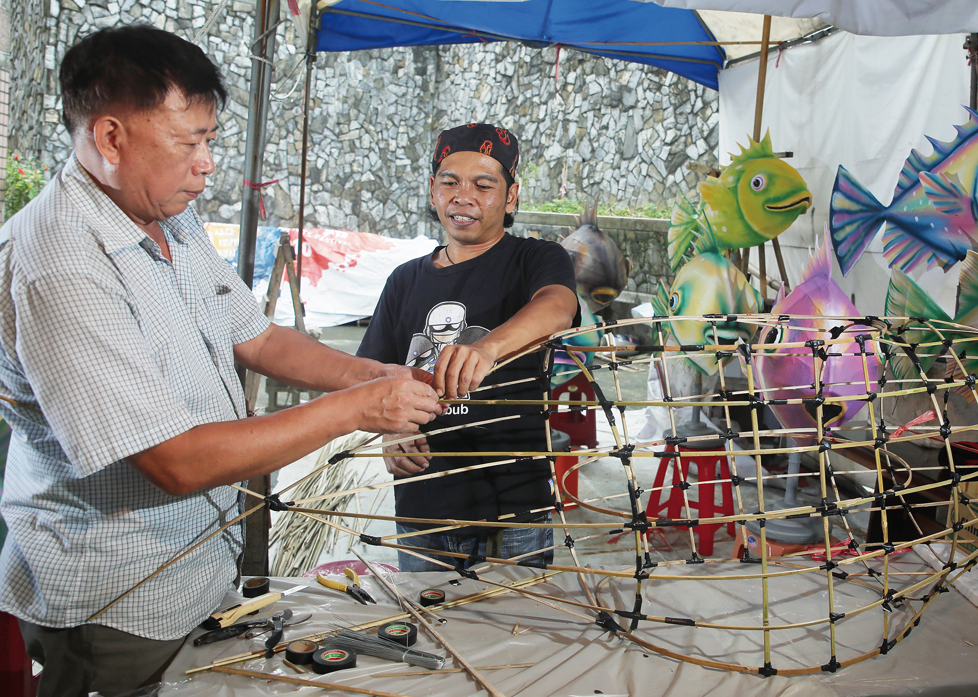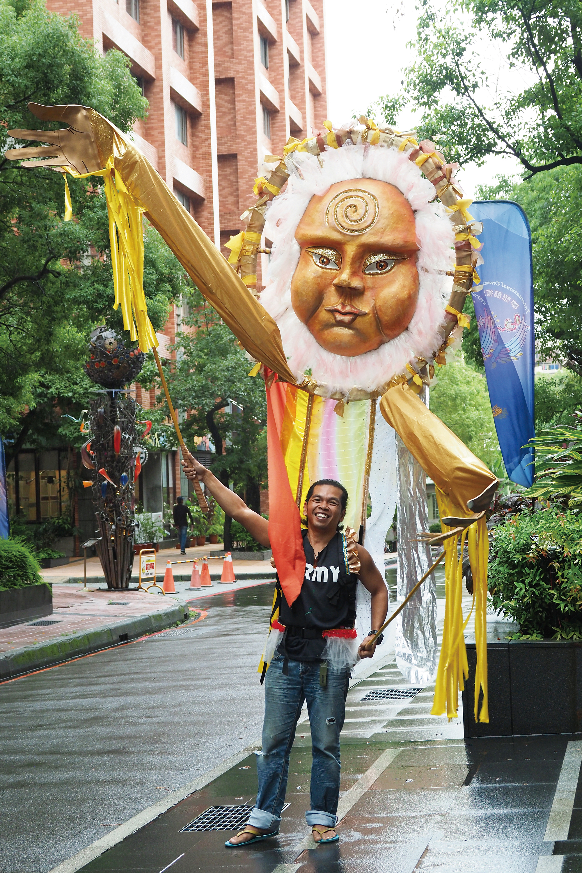 ワヤンは各地を訪れてインスタレーションアートの作り方を教え、地域の住民たちと楽しむ。中国語は決して上手ではないが、その親しみやすい笑顔が互いの距離を縮める。