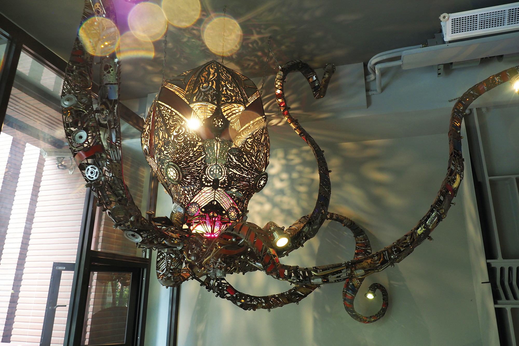 潮州の三共地域にある呉家の古い民家は50年以上誰も住んでおらず、内部は荒れ果てていた。そこで住民から提供された竹材や木の扉などを用い、ワヤンがユニークなカウンターを作った。天井は布地で覆い、暖かい雰囲気を出している。