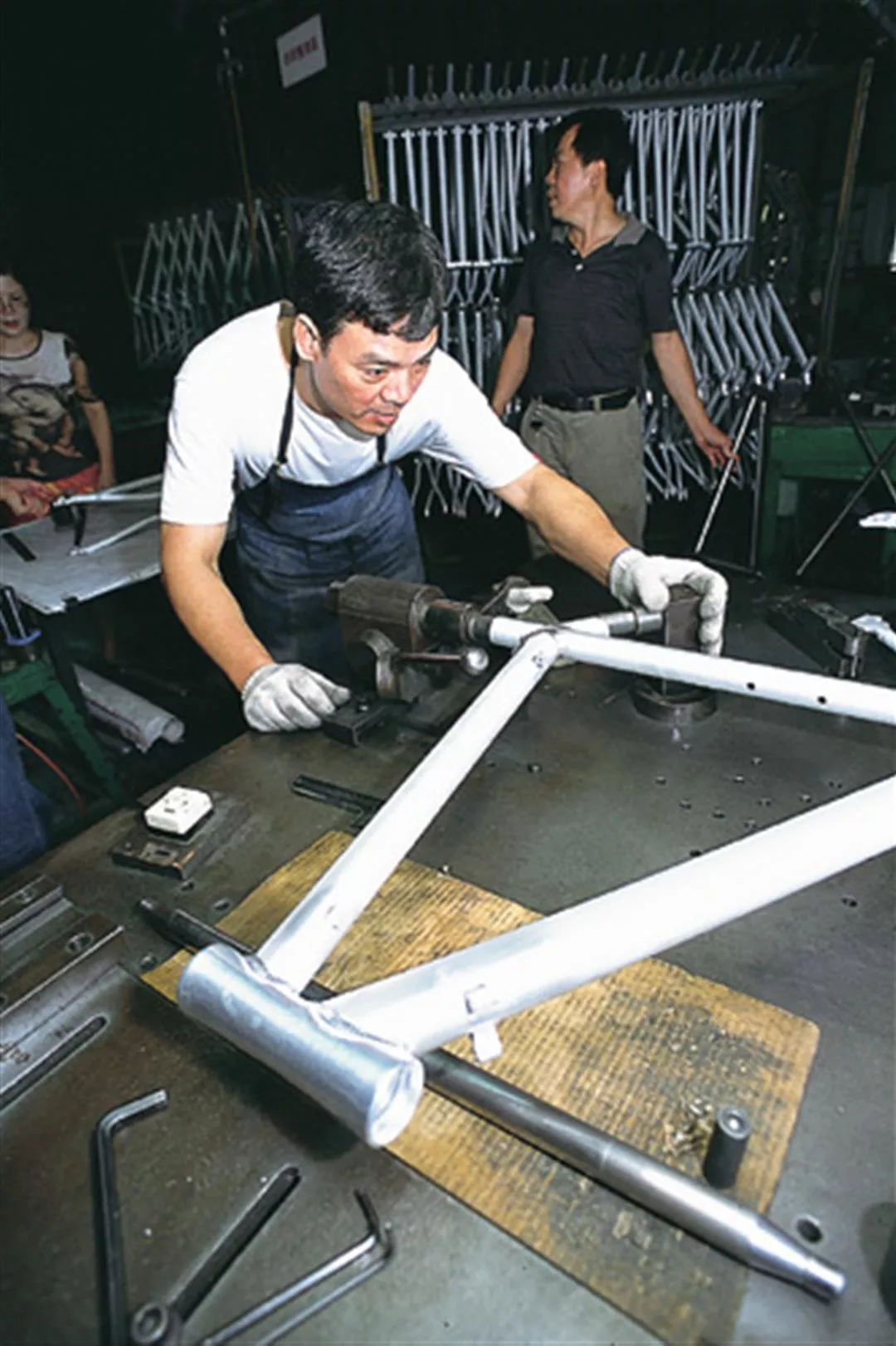 産業は近年、高級路線へと転換している。写真はCSKのフレームを製作する台中の侑圓社の工場だ。