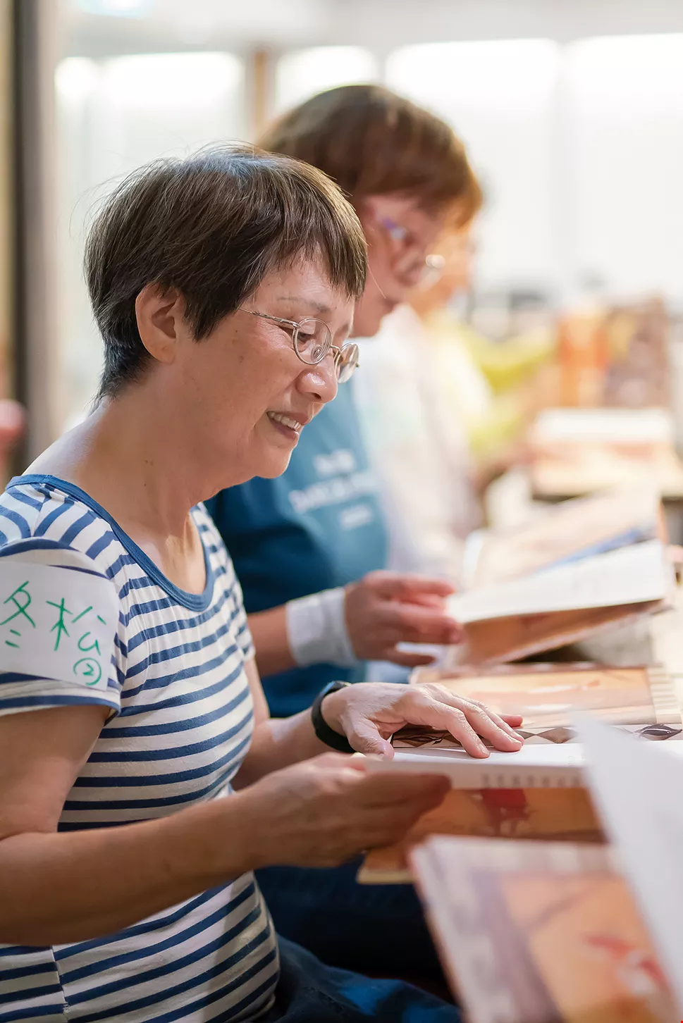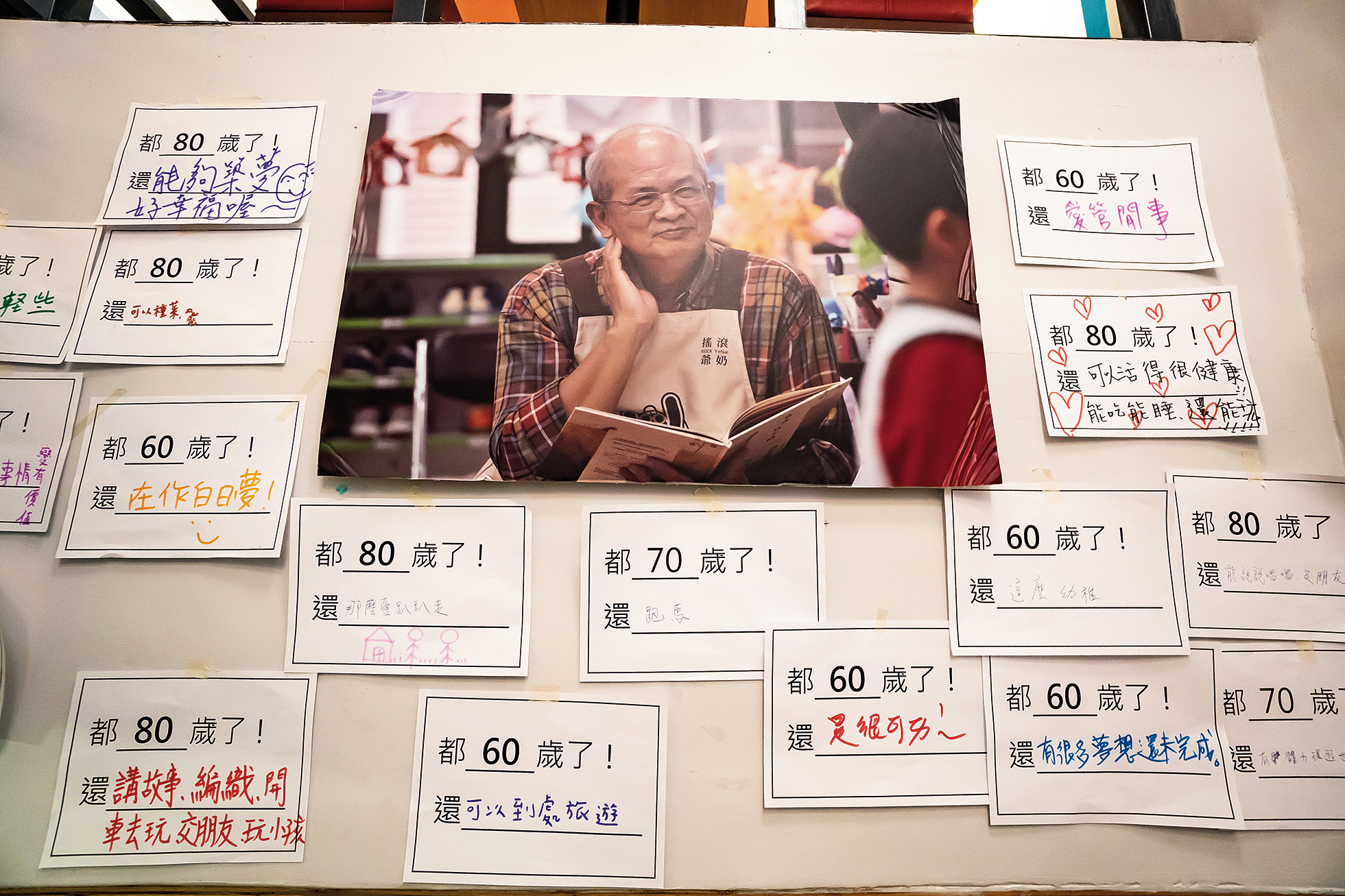絵本は、ここのお年寄りたちが物語を語るための重要な媒介である。壁一面を占める書架には色とりどりの絵本が並ぶ。大学では演劇、大学院では教育心理‧指導を学び、絵本作家でもある林宗憲は、専門的な知識をもって絵本を解釈する。だが、教材にふさわしい絵本を選ぶのは非常に難しく、多くの時間を費やす。