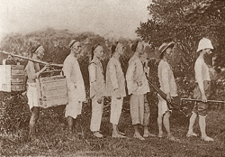 「我々は様々な方法で旅したが、たいていは歩いた。徒歩の旅は疲れるし危険にも遭遇しやすい。道は常に険しく、高山やジャングル、焼け付く海岸を抜け、山ではよく激流に遭遇した」