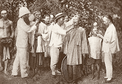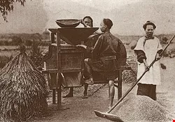 マカイは台湾で布教と医療と学校創立を行なう他、方々を旅して文章と写真で当時の台湾社会の様子を記録し、歴史的に貴重な資料を残した。写真は宜蘭の農民が唐箕(とうみ)という農具を使って穀物を精選している様子。女性も一緒に働いている。