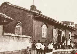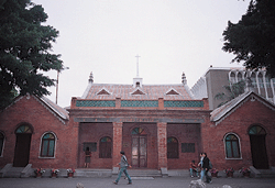 医館は北台湾で初めての西洋医学の病院だった。病院の入口に立っているのがマカイである。